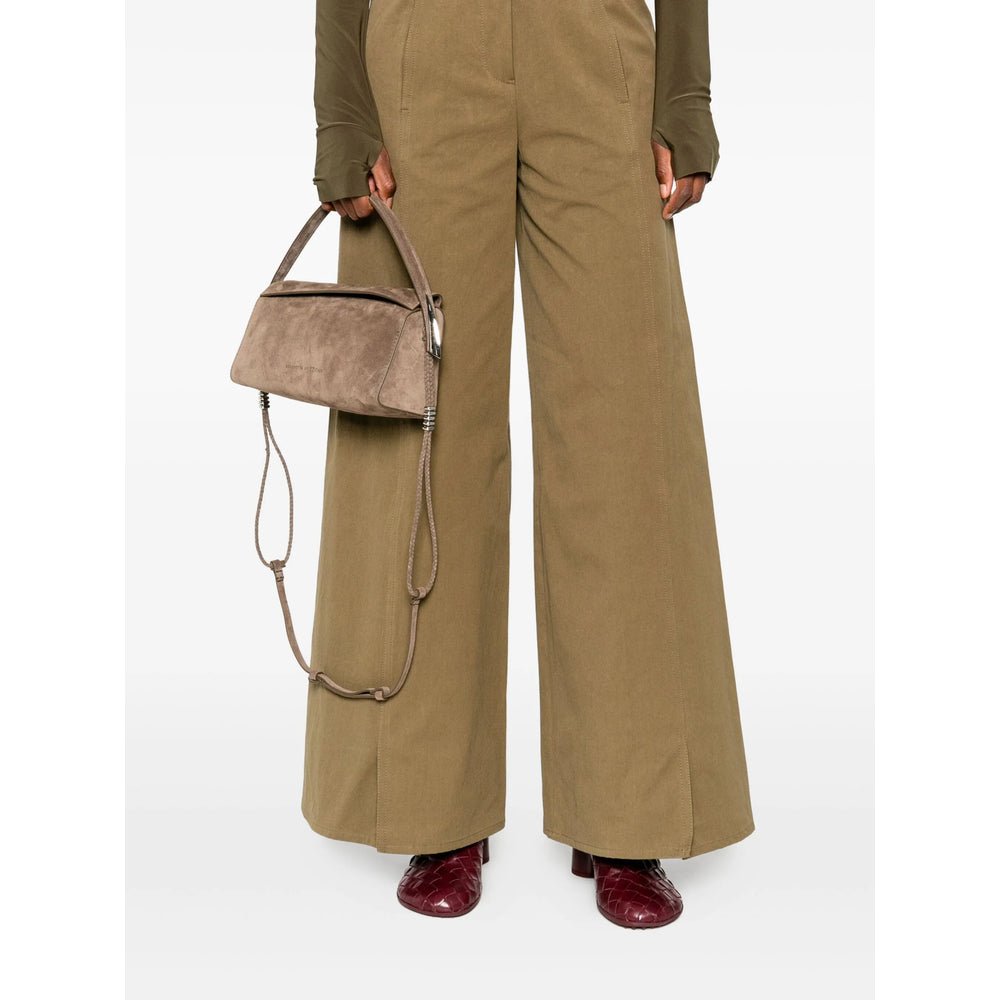 grey suede single top handle foldover top internal zip-fastening compartment main compartment