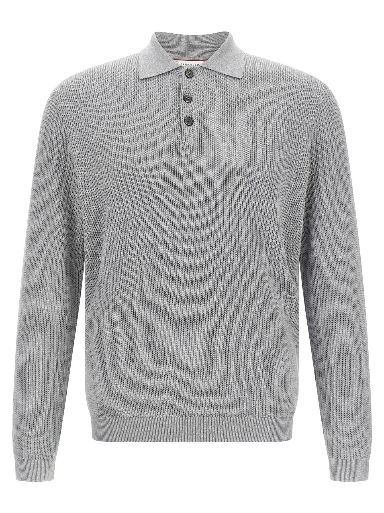 Brunello Cucinelli Honeycomb Cotton  Shirt Polo - Gray | 8a15879ccc04fedeee6d78750814ca0c61f9647a
