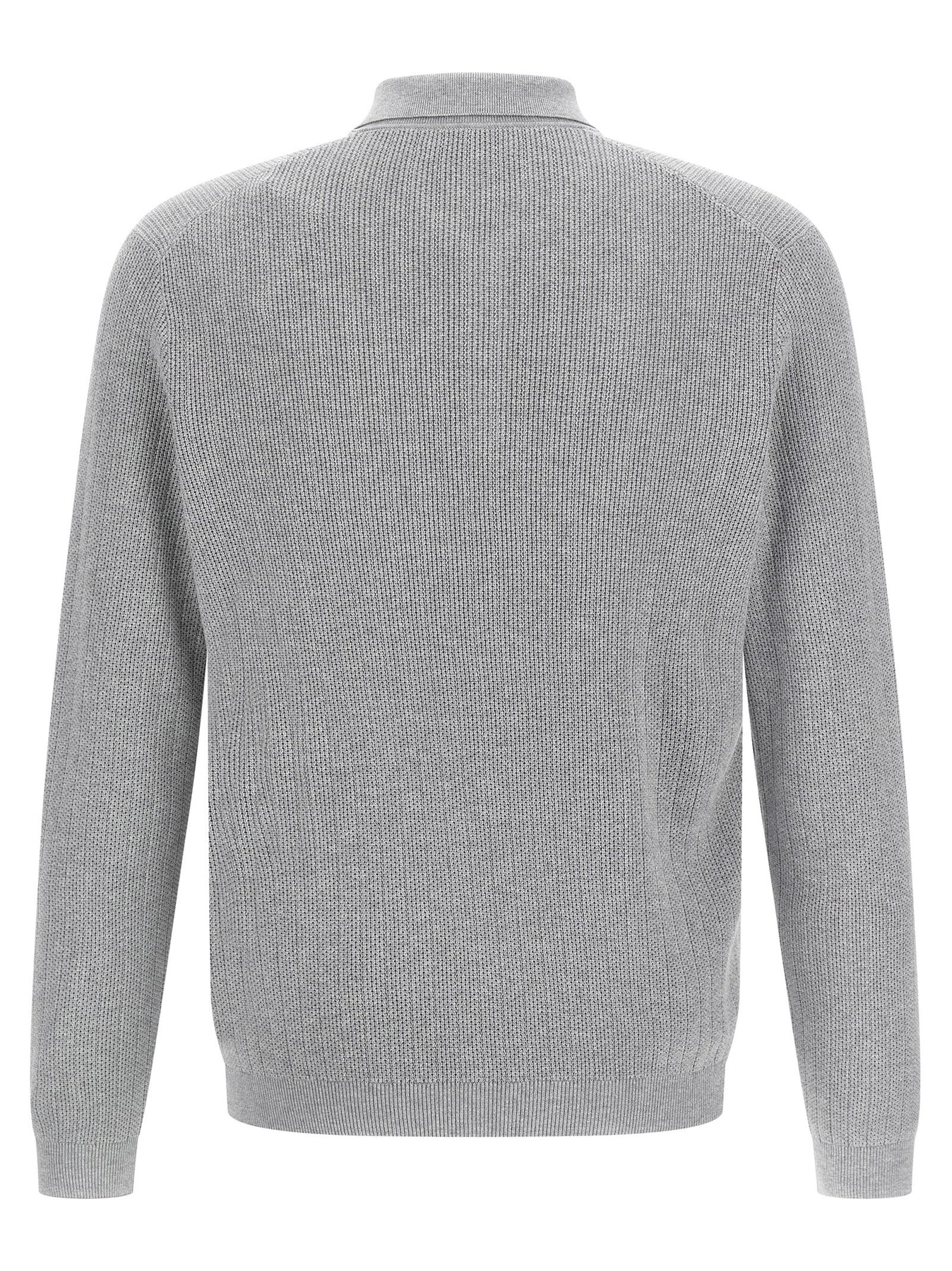Pure cotton knit polo shirt with honeycomb texture, ribbed knit, collar and buttons, long cuffed sleeves.