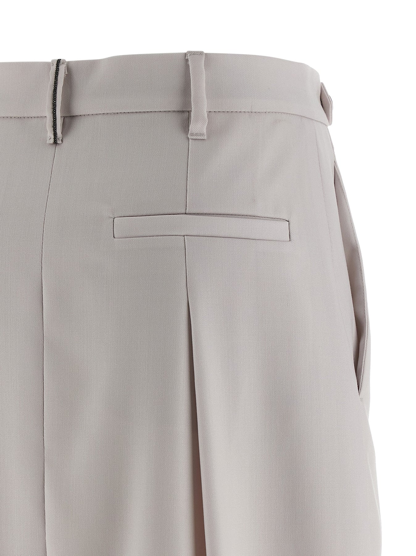 'Sartorial Curved' midi skirt in virgin wool and mohair twill, front and back gusset pins, hook and button zip closure and front split, pockets, back Monile detail, lining.
