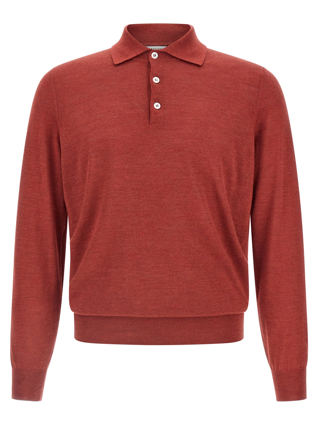 Polo shirt in light shaved cashmere, silk and linen knit, collar and buttons, long sleeves with cuffs.