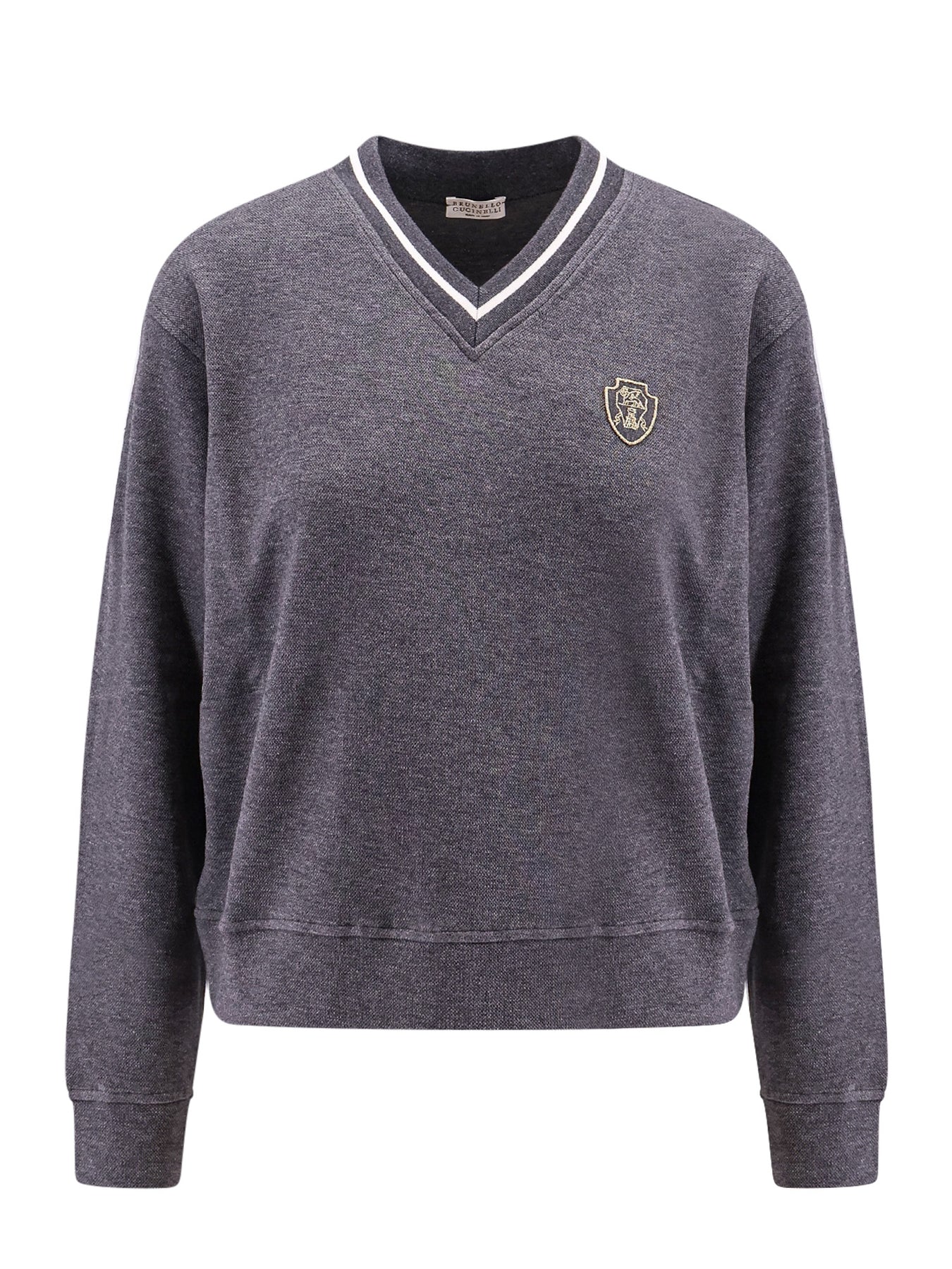 SKU: MG927HC702_C080 - V-neckline long sleeve with ribbed cuff patch with embroidered logo made in italy 100% cotton
