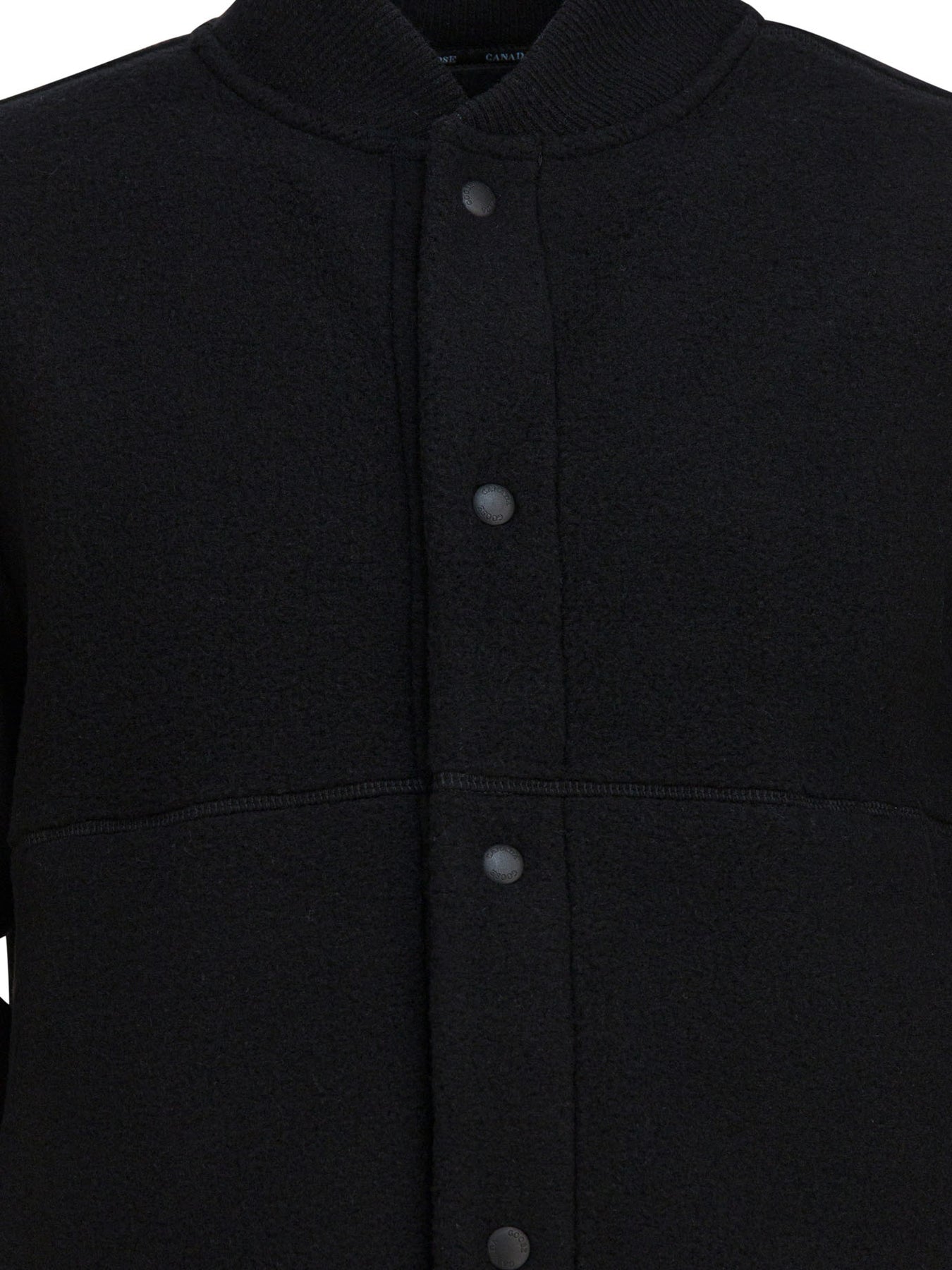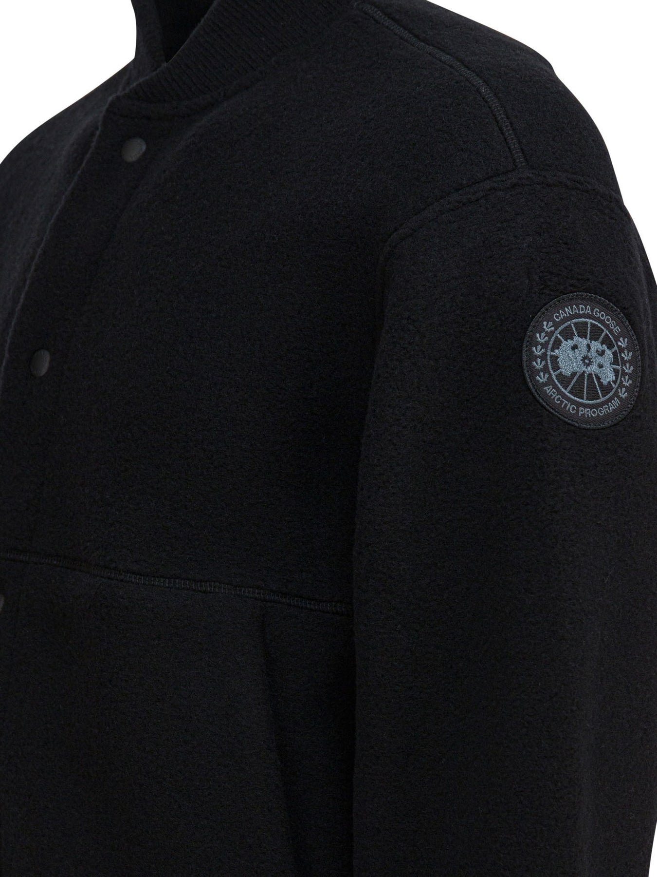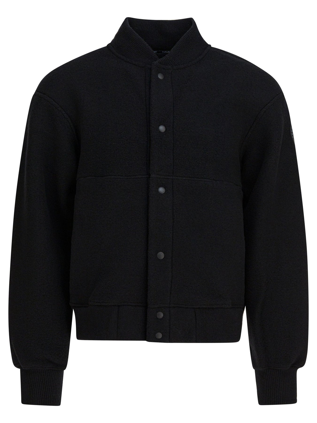 Canada Goose "Hudson Fleece" bomber jacket with Kind Fleece construction, a technical fabric made from 62% recycled wool, 18% wood-based TENCEL™ Lyocell, 13% partially bio-based Sorona® polymer and 7% polyamide. Compact construction, regular silhouette with ribbed collar and cuffs. Front snap button closure, integrated zipper pockets on front, woven branded patch detail on chest. || - Ribbed collar - Snap button closure - Zippered front pockets - Woven logo patch - Eco-friendly product