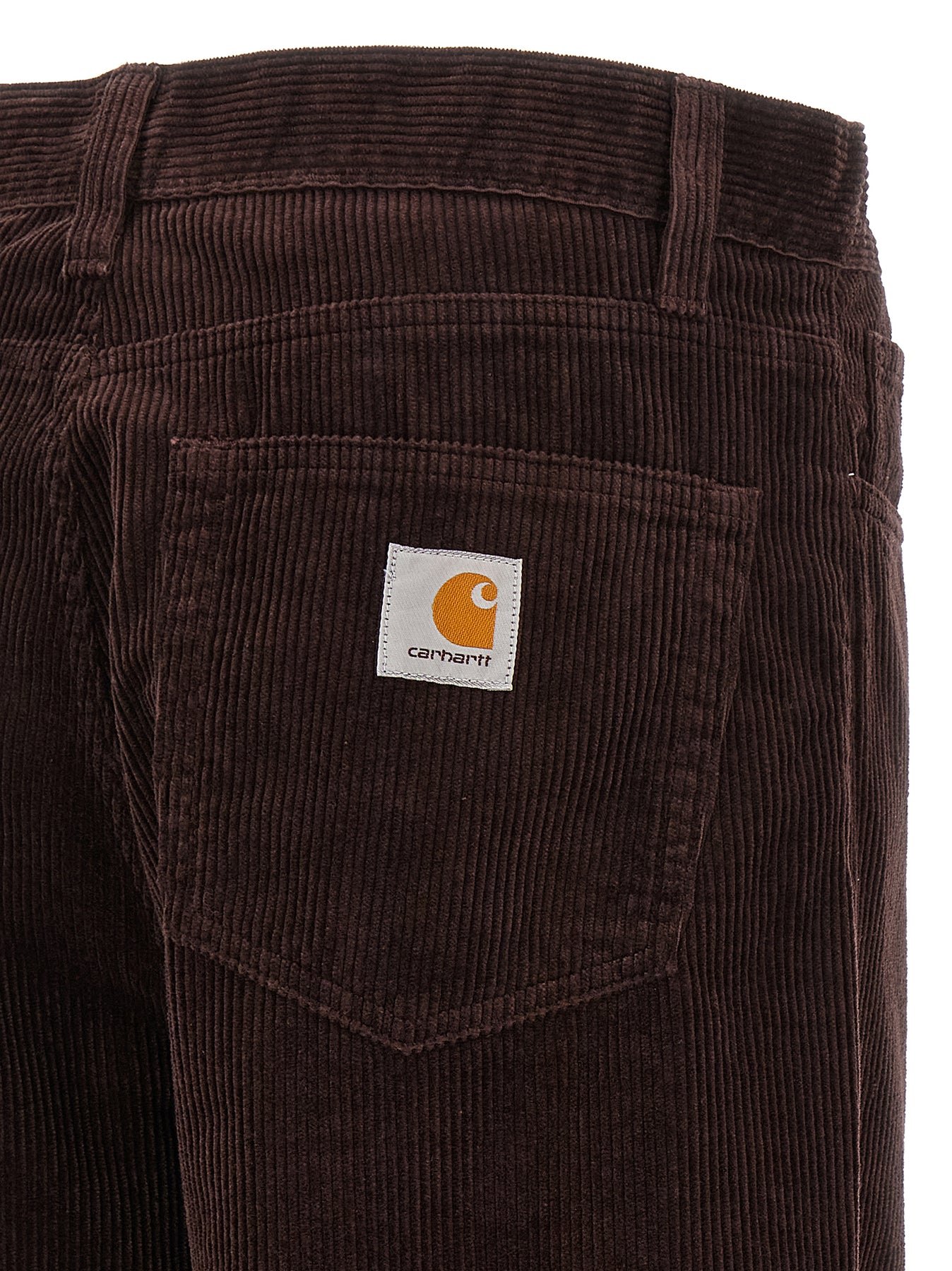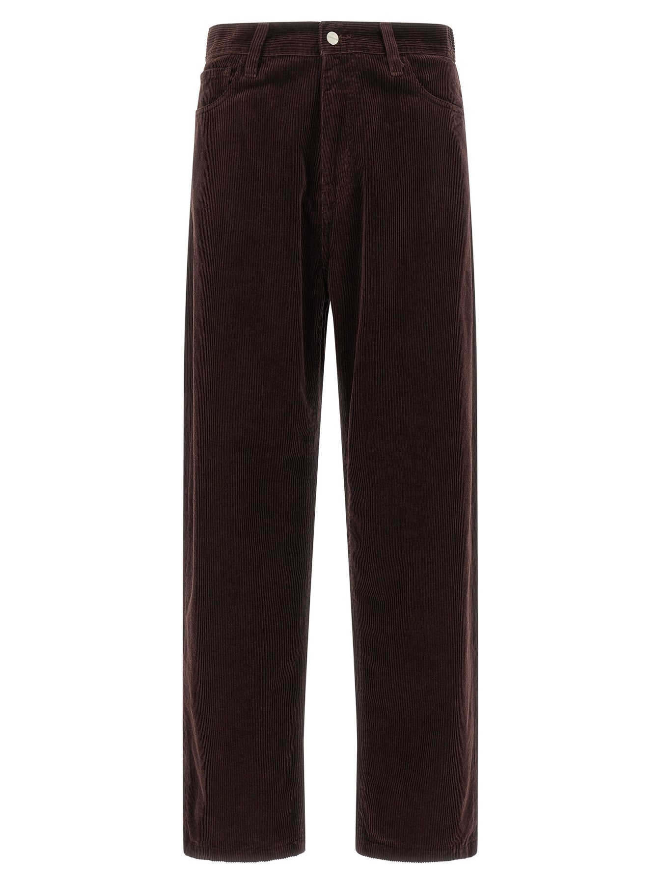Coventry 'Landon' eight-ribbed velvet pants, regular waist, wide and straight leg, five pockets, front zip and button closure, back logo patch.