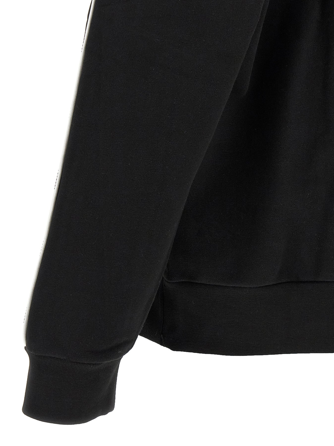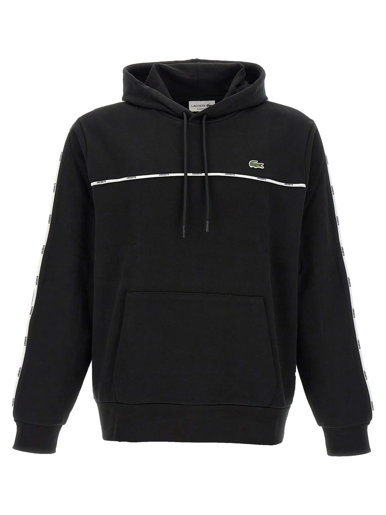 Brushed cotton hoodie with Lacoste Trim detail and front logo patch, kangaroo pocket, long cuffed sleeves and dropped shoulders.