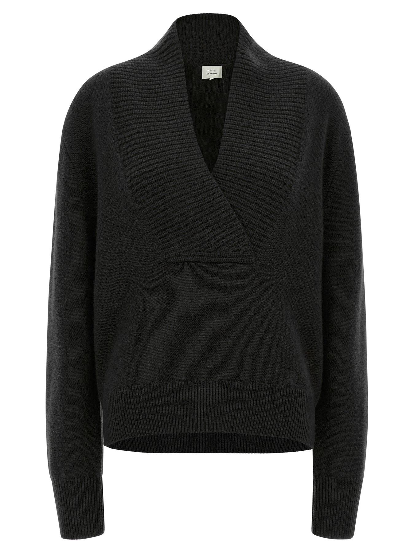 'Makela' cashmere sweater with crossed V-neck, tone-on-tone embroidered logo on the front, long cuffed sleeves.
