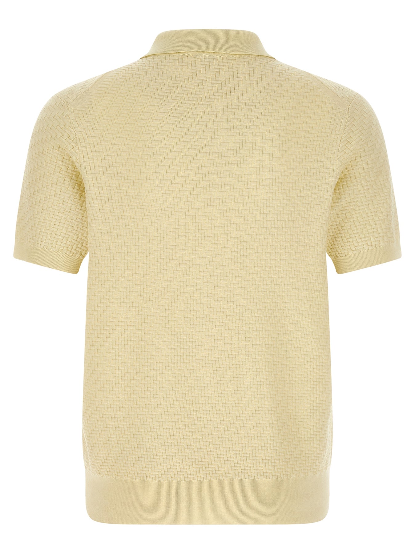 Polo shirt in cotton, silk and cashmere blend weaving 3D texture fineness 18 days, collar and buttons, short sleeves with cuffs, band on the hem. SUSTAINABLE: This garment contains GOTS certified cotton. The Global Organic Textile Standard (GOTS) is a voluntary standard obtained through independent third-party verification.