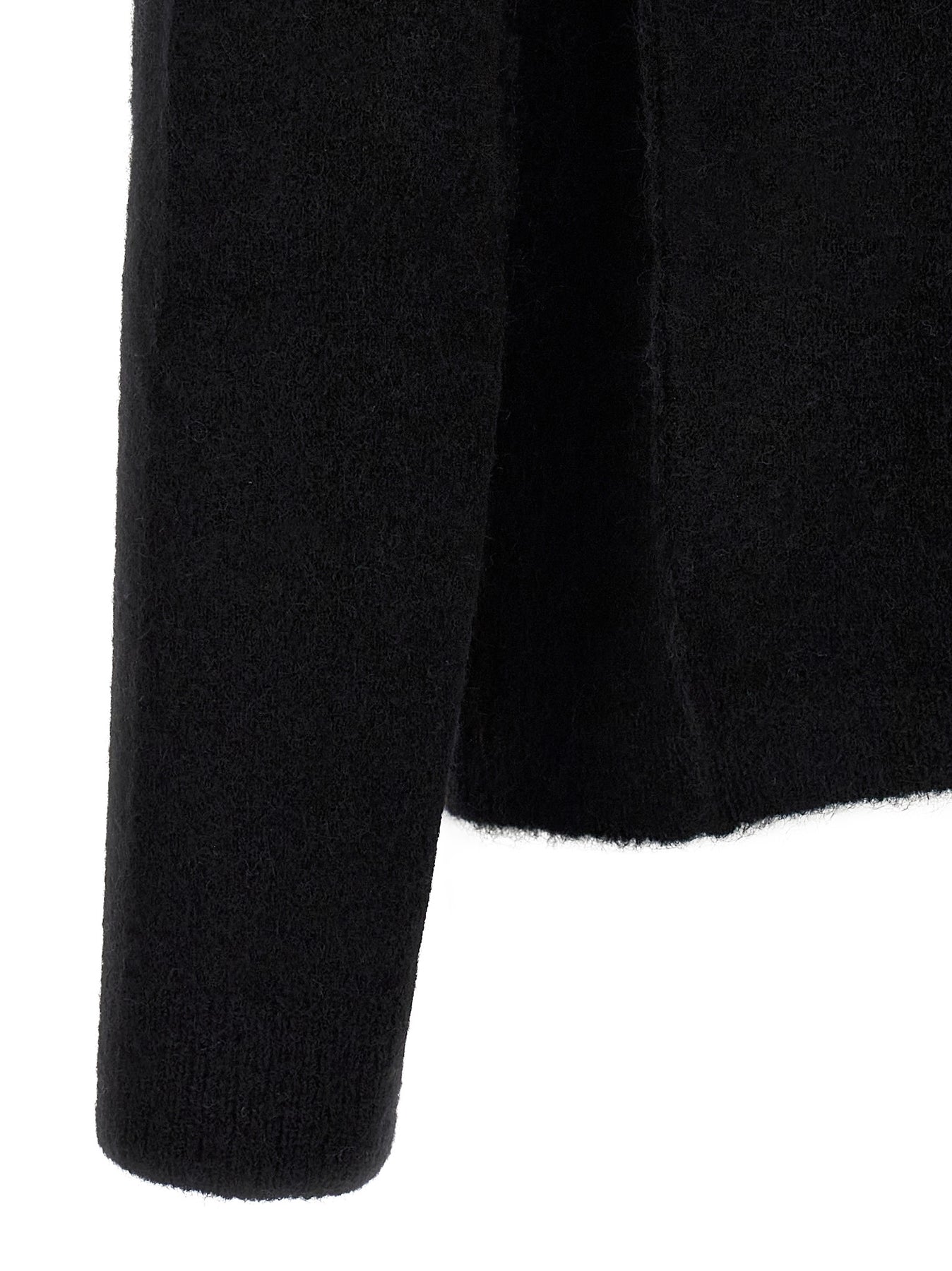 'LS Top' wool sweater with boat neck, front cut-out details, long sleeves.