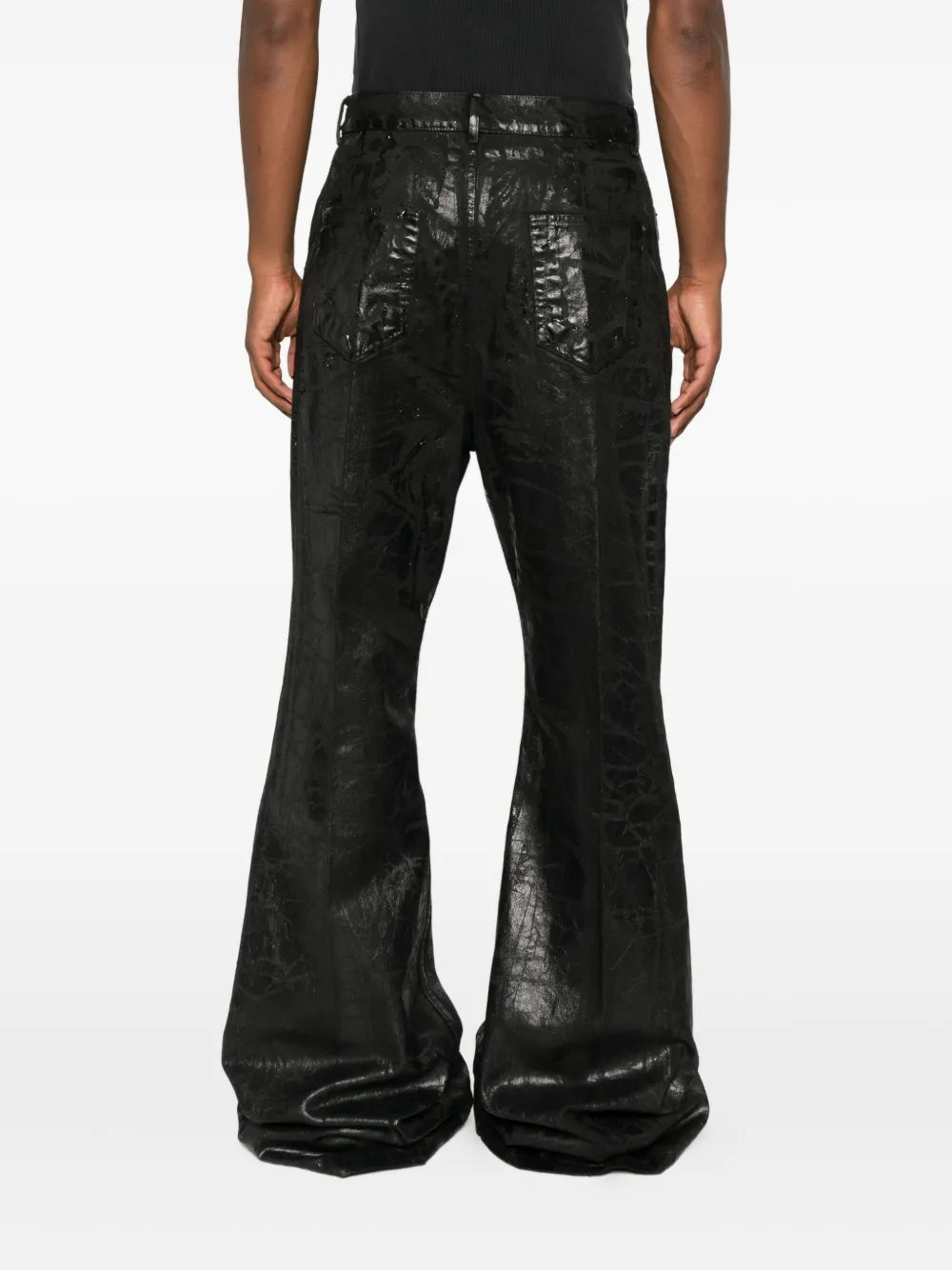 Flared trousers with a metallic effect Origin: Italy Features Black Metallic finish Flared leg Button fly Five pockets Composition Lining: 52% polyester, 48% cotton Outer: 100% cotton Washing instructions Read the manufacturer`s instructions ID RR02E1335BMC