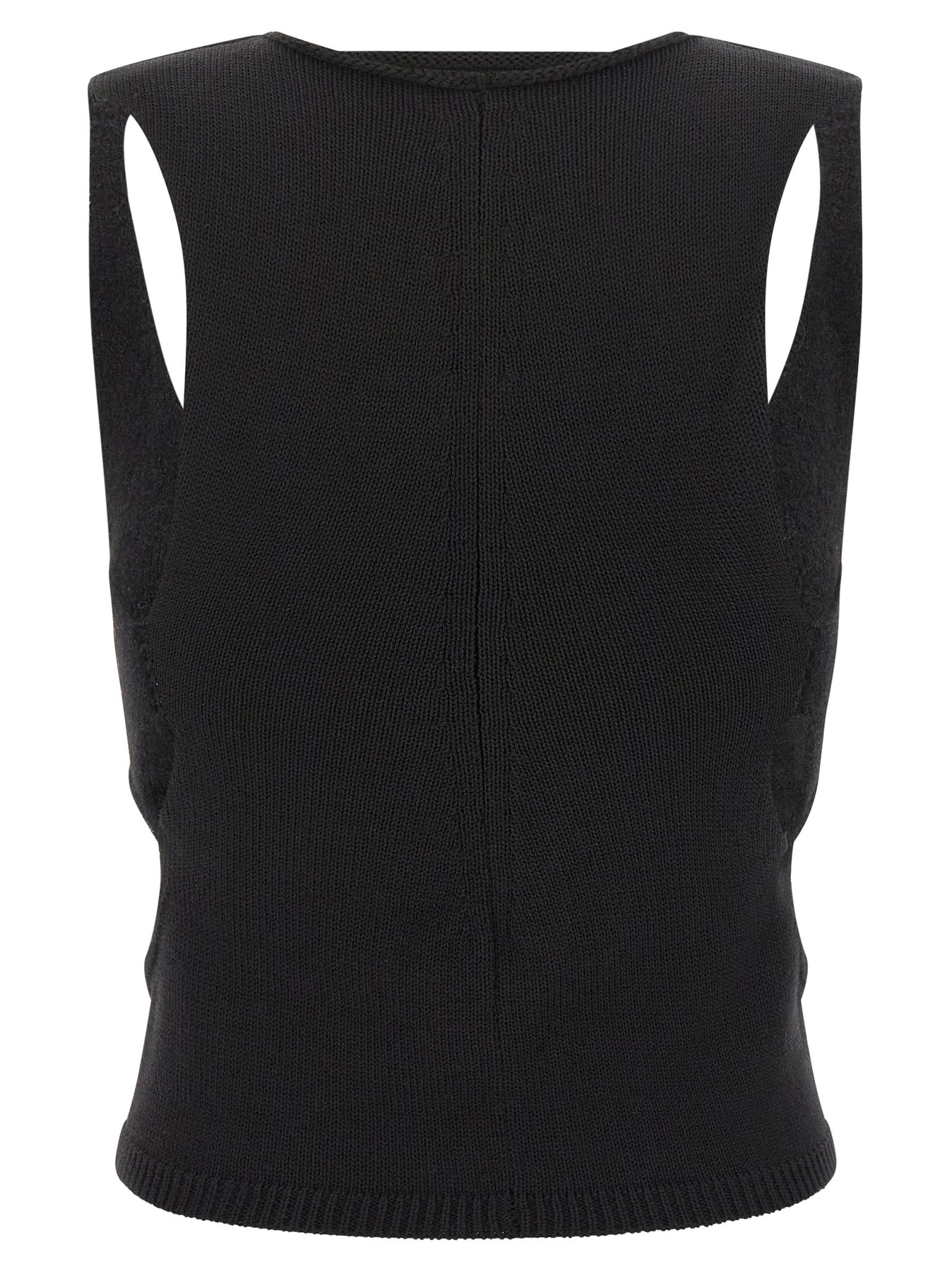'Tanja' wool top, front cut-out details and hips, crew neck.