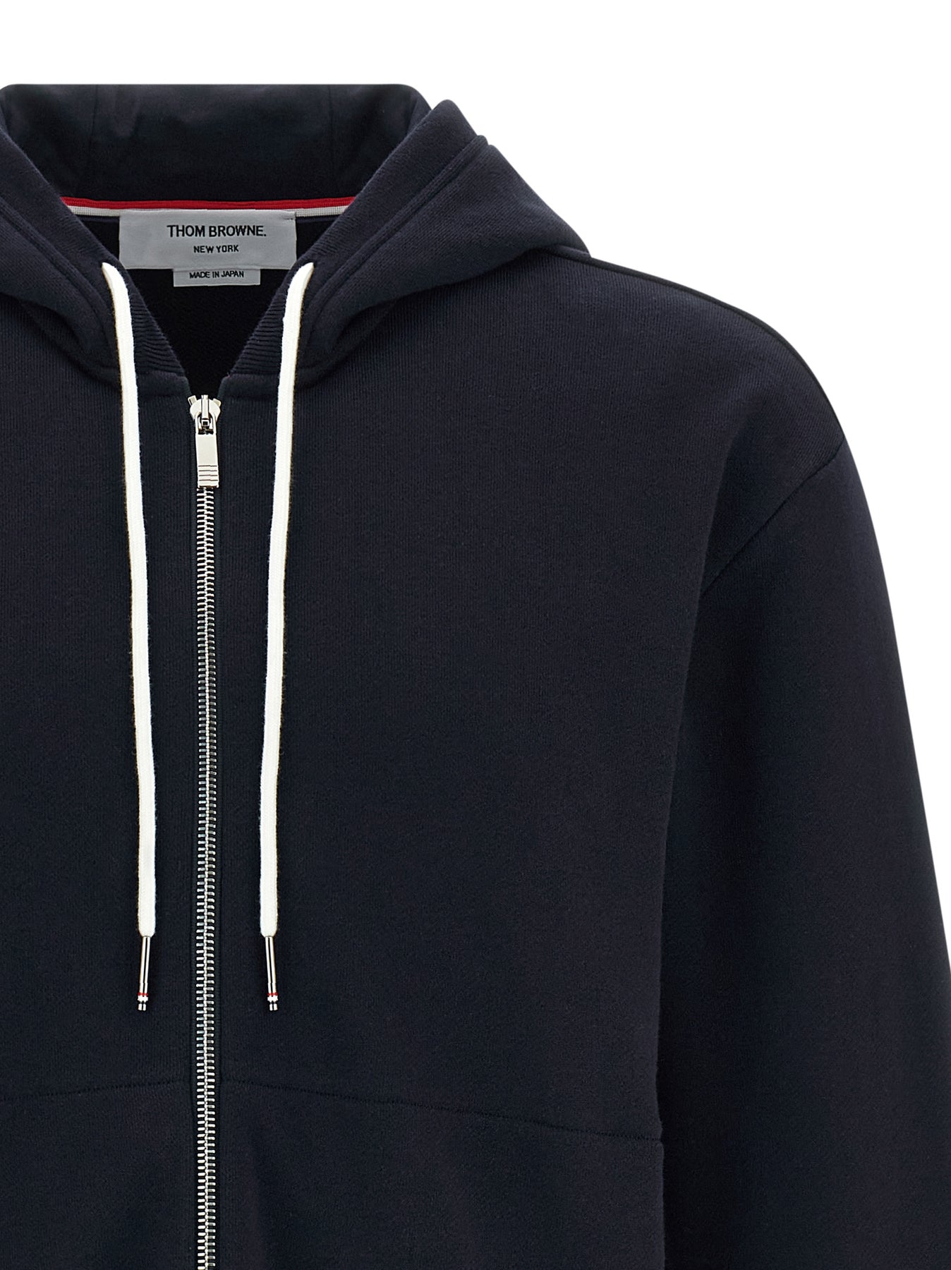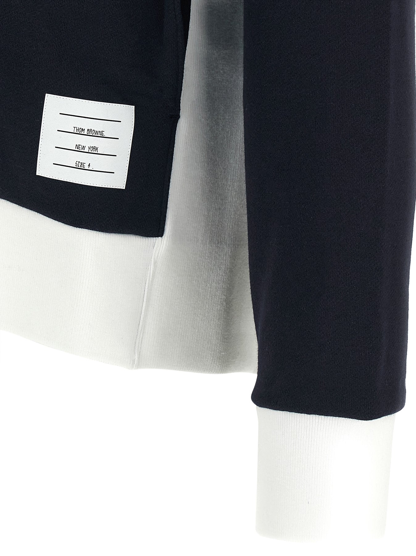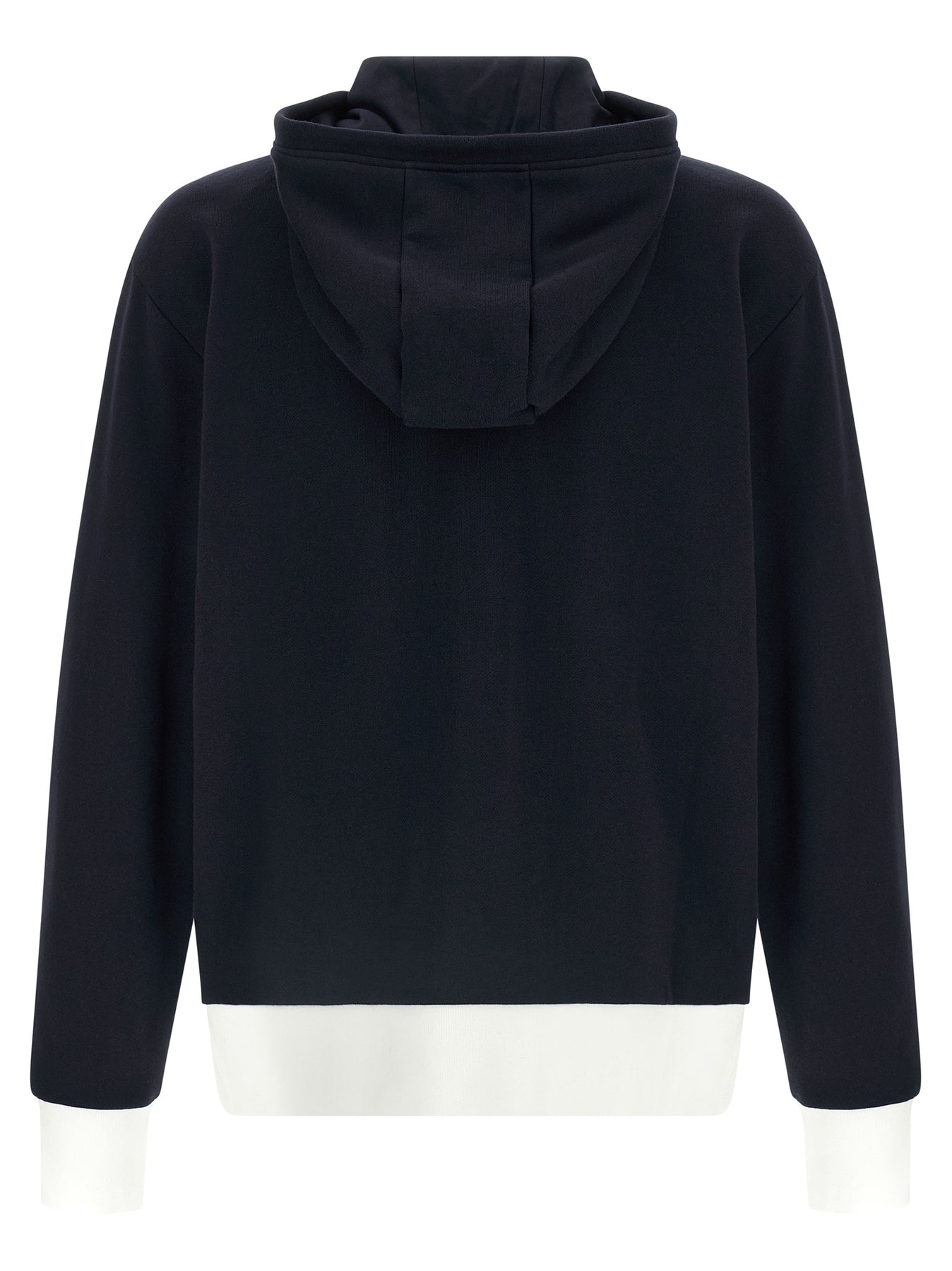 Gauze cotton hoodie with contrast details, side '4 Bar' ribbed stretch knit inserts, front zip closure, pockets, long cuffed sleeves.
