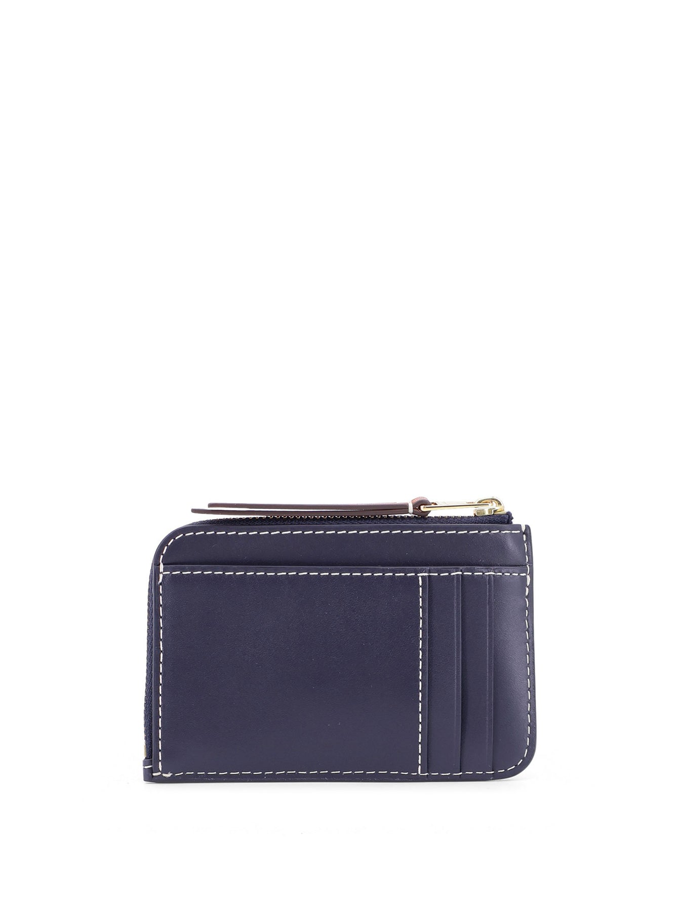 Closure with all-around zip Pocket with flap and button on the front Four compartments for credit cards on the back Metal keyring Leather/cotton/polyester Lining: 100% polyester W: 11,5 cm x H: 7,5 cm SKU: 165035405