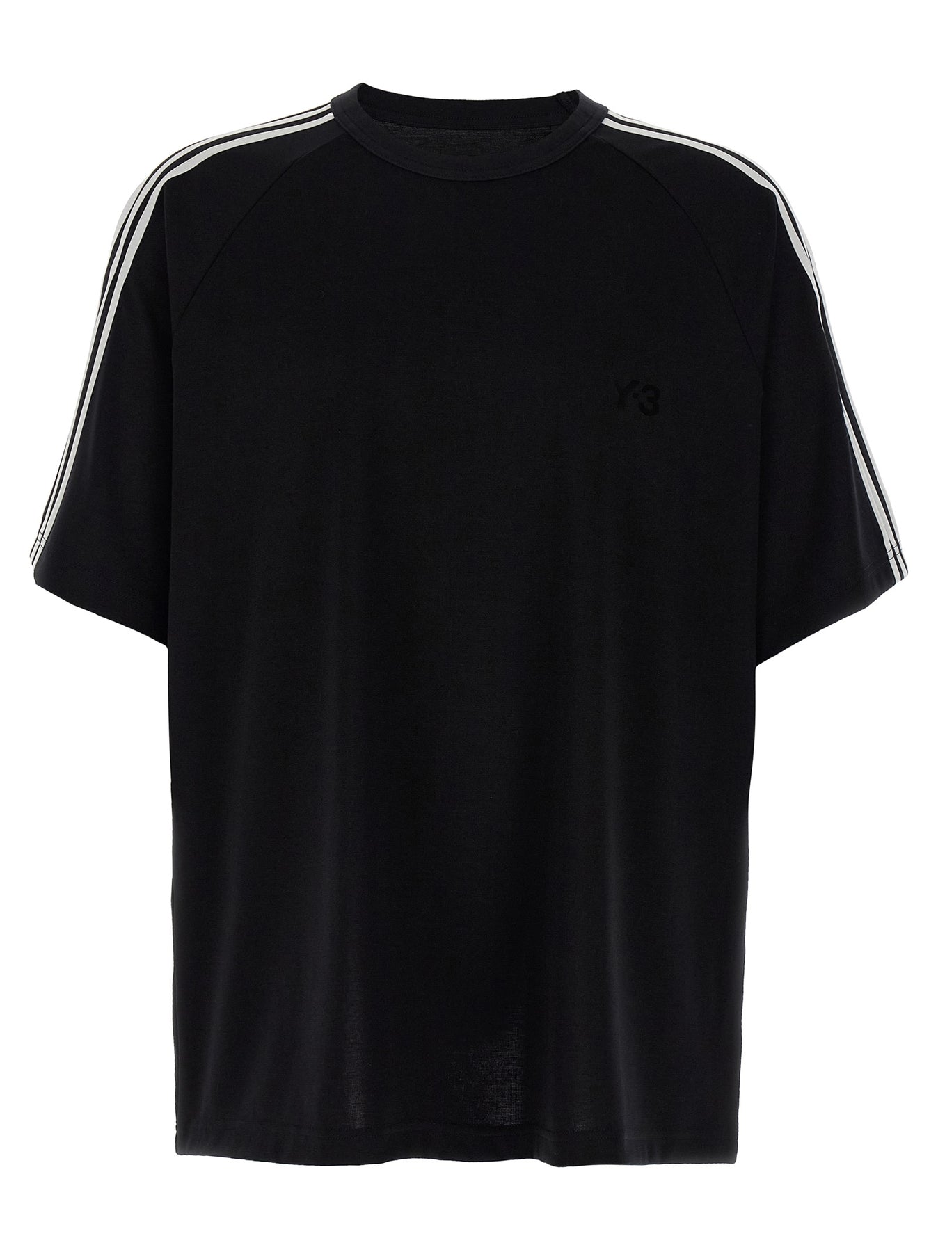 'Y-3 3 strisce' lyocell, nylon and sheep wool blend t-shirt with contrast details, crew neck, short sleeves and dropped shoulders. The strips partially made with metal wire to be able to play with the shape.