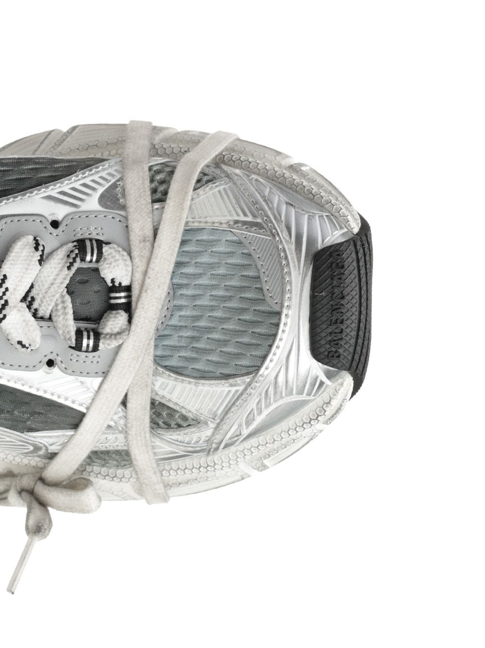 3XL Gradient sneaker in mesh, polyurethane, and polyester in black, gray, and white. Distressed finish. Balenciaga logo on the toe and back. Embossed size on the upper and back of the heel. Rubber 3XL branding on the tongue with reflective detail.