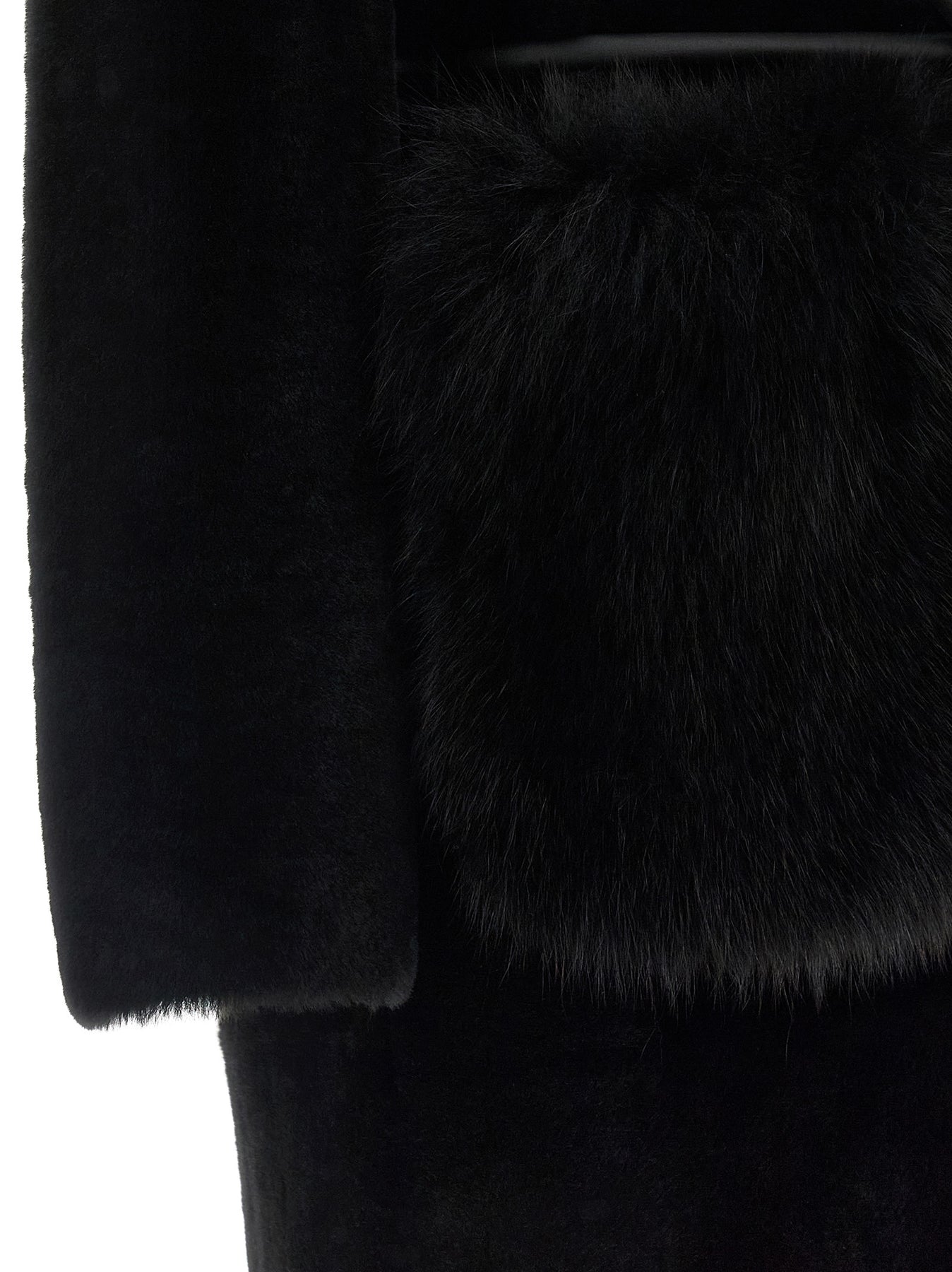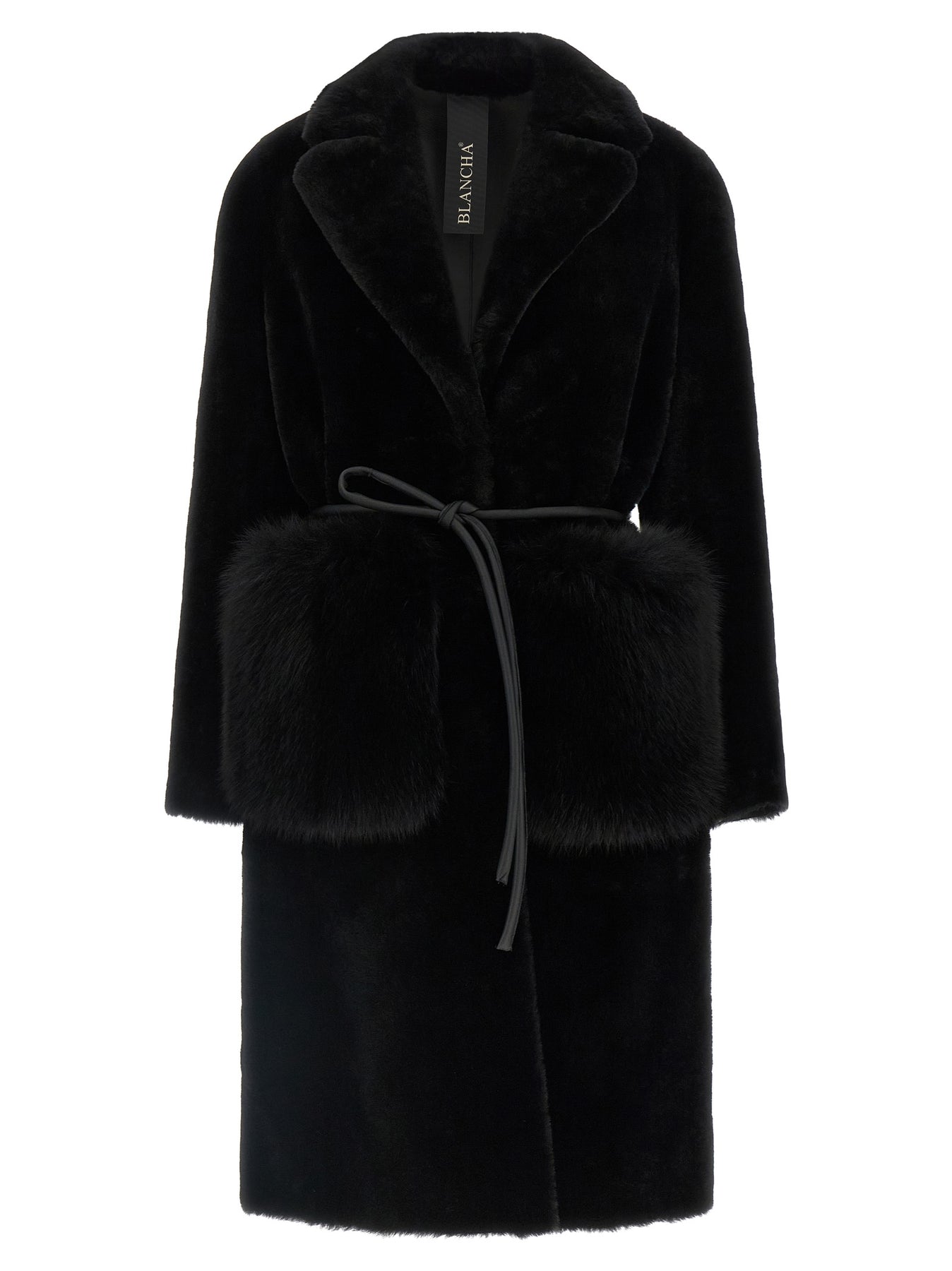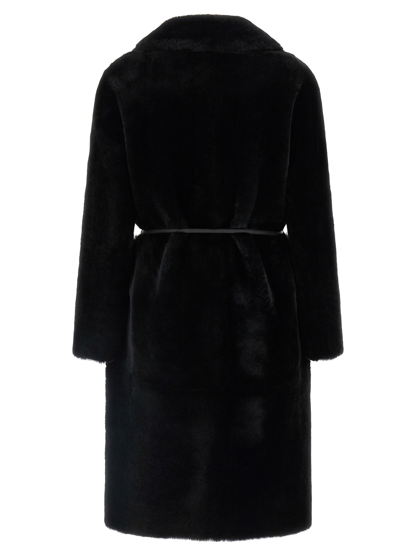 'Merino Straight-Volpe' fur coat with button closure, knotted belt at the waist, pockets, long sleeves.