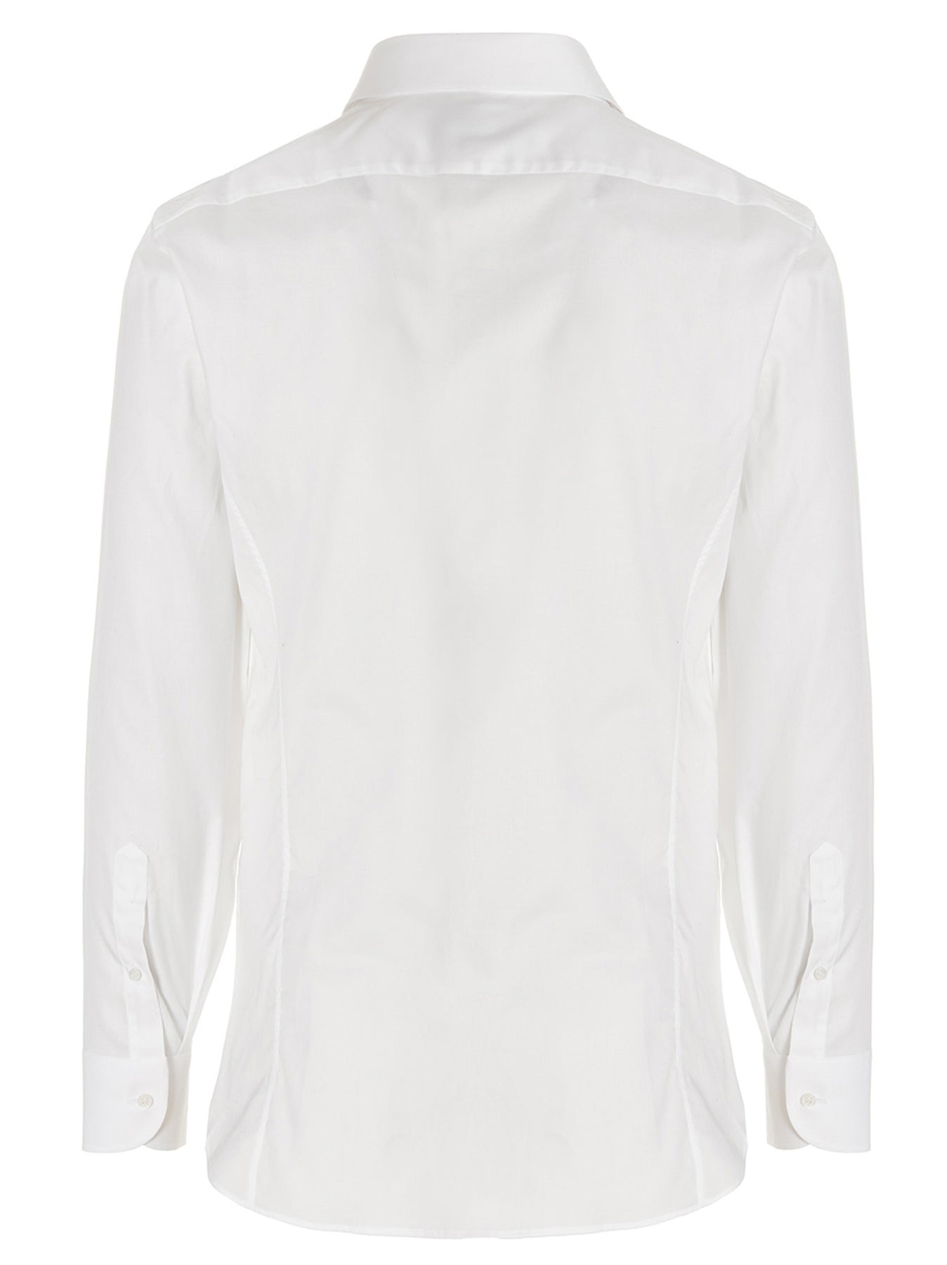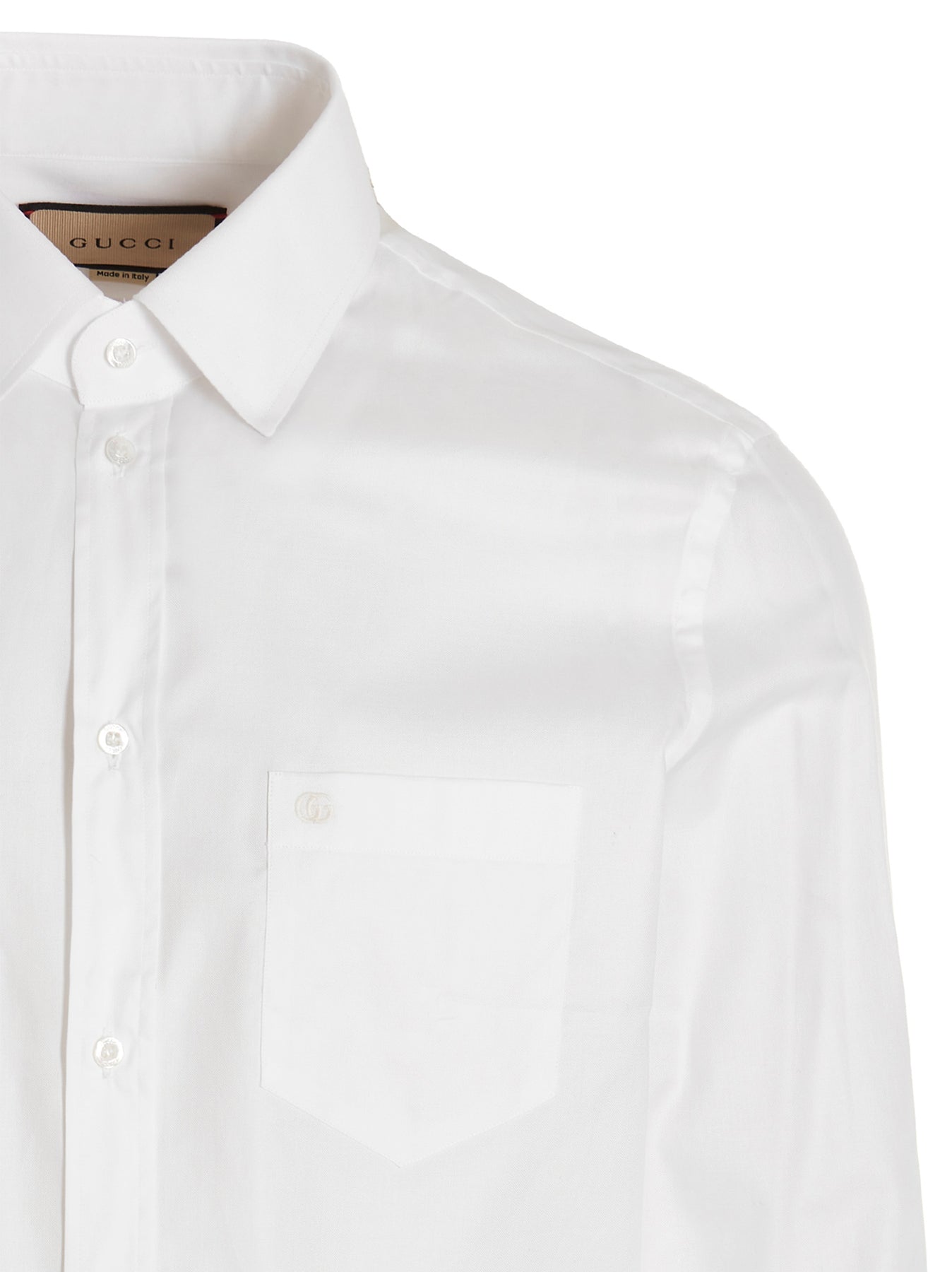 Cotton shirt with pocket with embroidered logo, a button closure, and long cuffed sleeves.