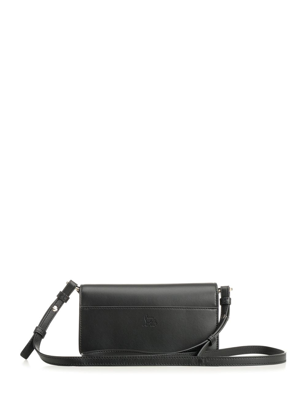 Christian Louboutin "Bettina" mini lambskin crossbody bag with gold-tone hardware, adjustable and removable leather shoulder strap, magnetic snap closure, main compartment, 2 card slots and a flat pocket on the back.