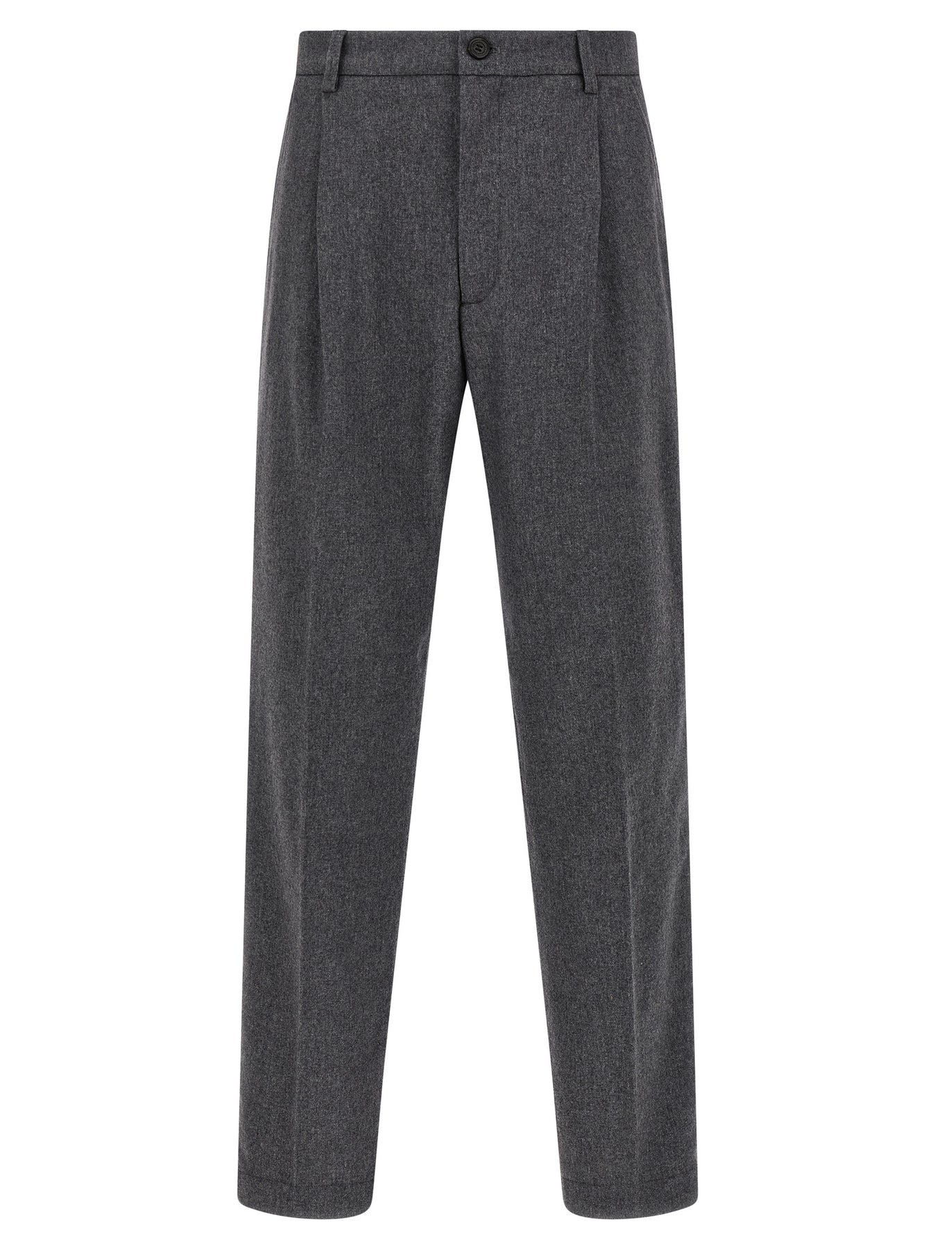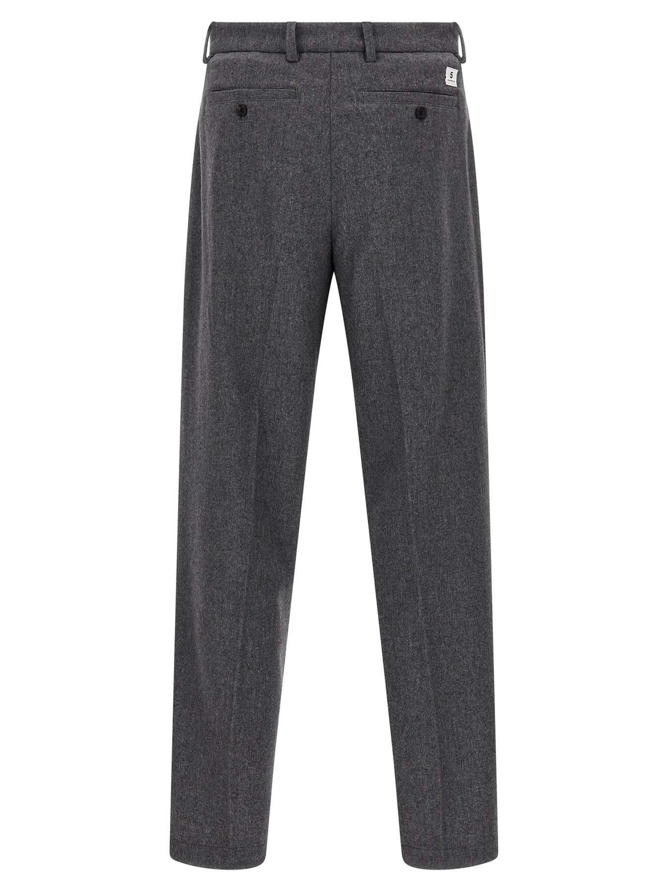 'Gin' cool wool mélange trousers, zip and button closure, pin tucks, ironed crease, pockets, straight leg.