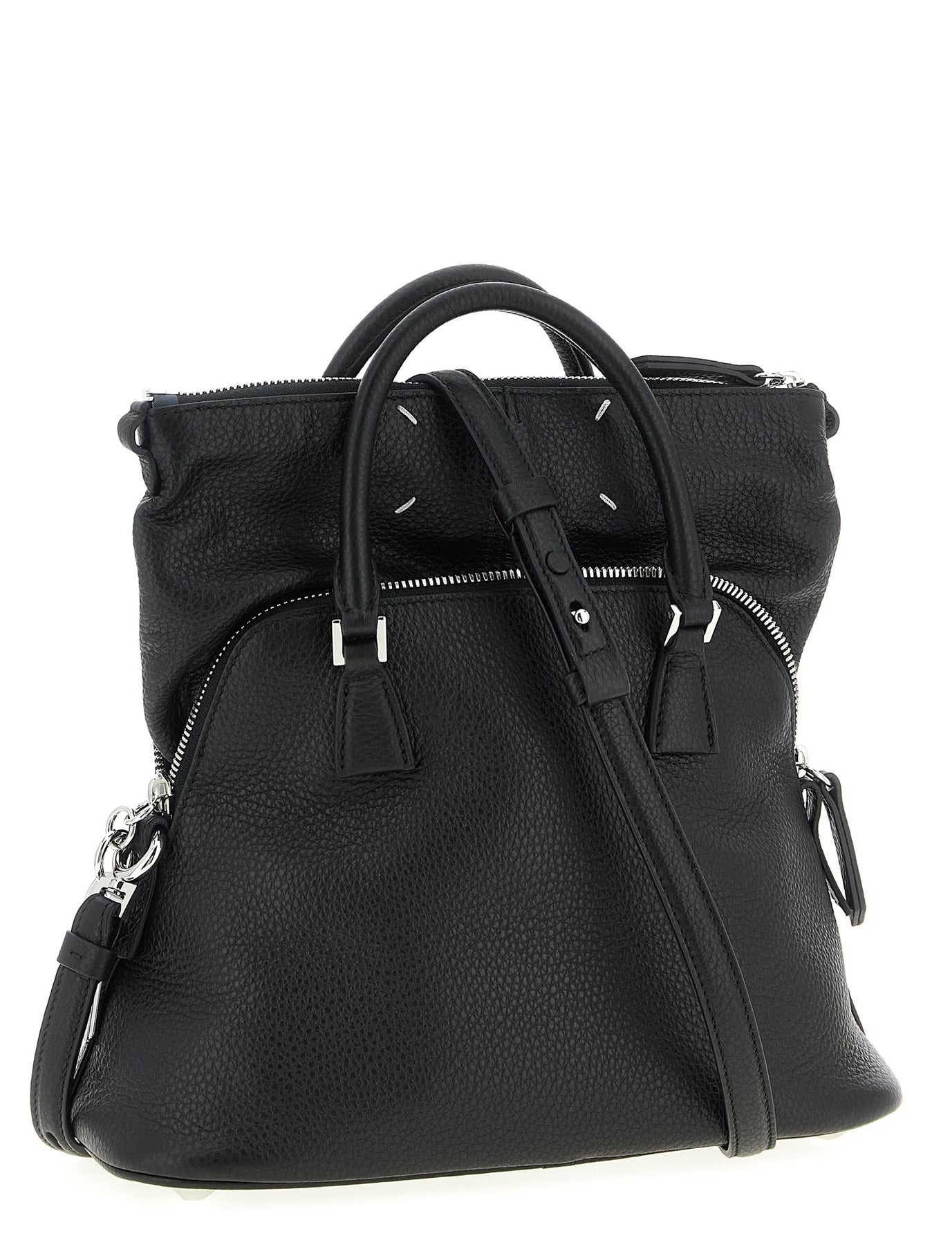 '5AC Mini' hammered leather handbag, zip closure, double fixed handle, removable leather tag, adjustable and removable shoulder strap, '4 stiches' logo detail
