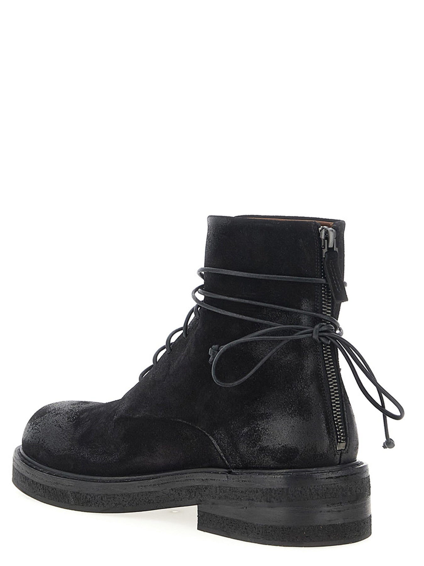 'Parrucca' suede used-effect reverse leather boots with rounded toe, front lace closure, back zip closure, hand-dyed leather and rubber multilayer sole.
