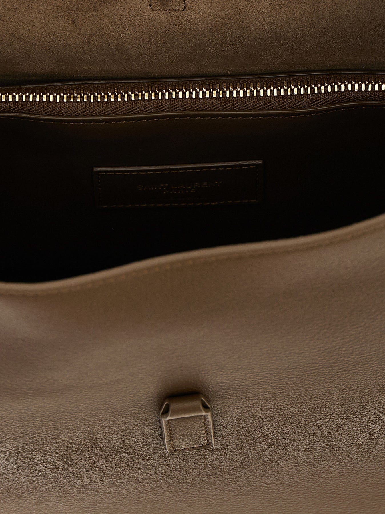 Small 'Le 5 à 7' shoulder bag in hammered leather, tone-on-tone suede lining, adjustable handle, and interlocking antiqued metallic Cassandre logo closure.