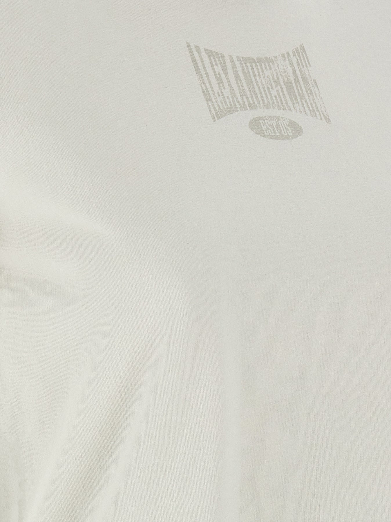 Off-white cotton T-shirt with a lived-in effect tone-on-tone logo print, crewneck, and short sleeves.