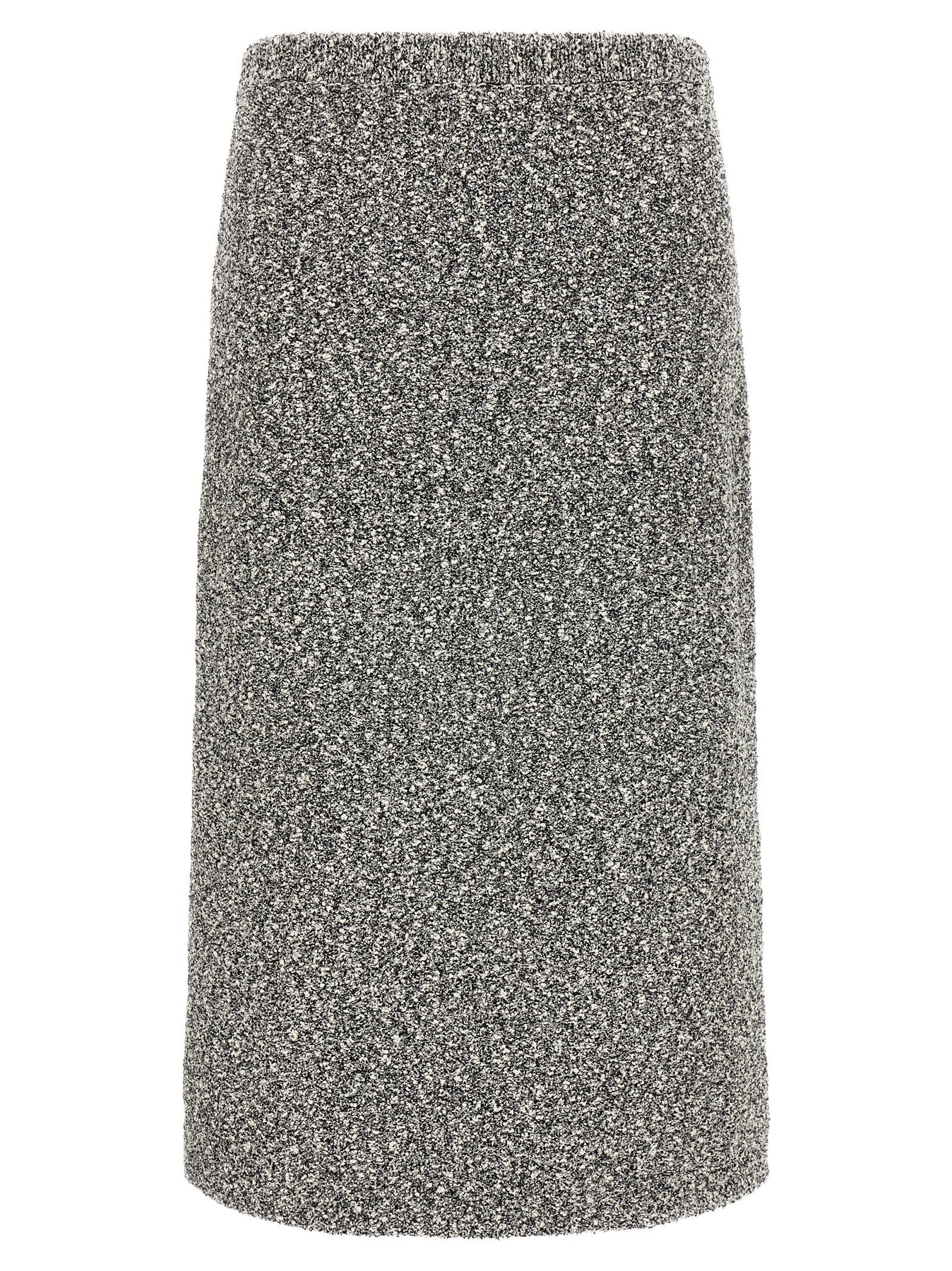 Midi skirt in tweed, slightly flared model with elastic waistband.