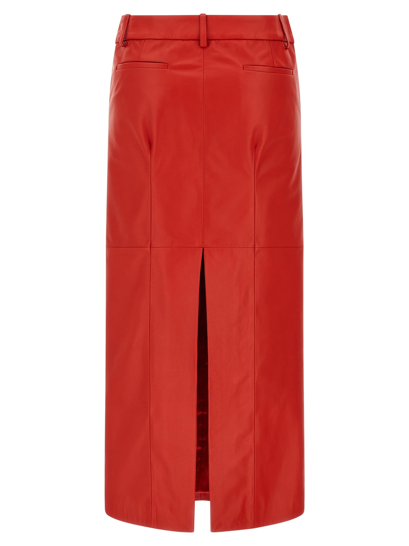 'Loren' nappa skirt, longuette model with wide back split, hook and button zip closure, pockets.