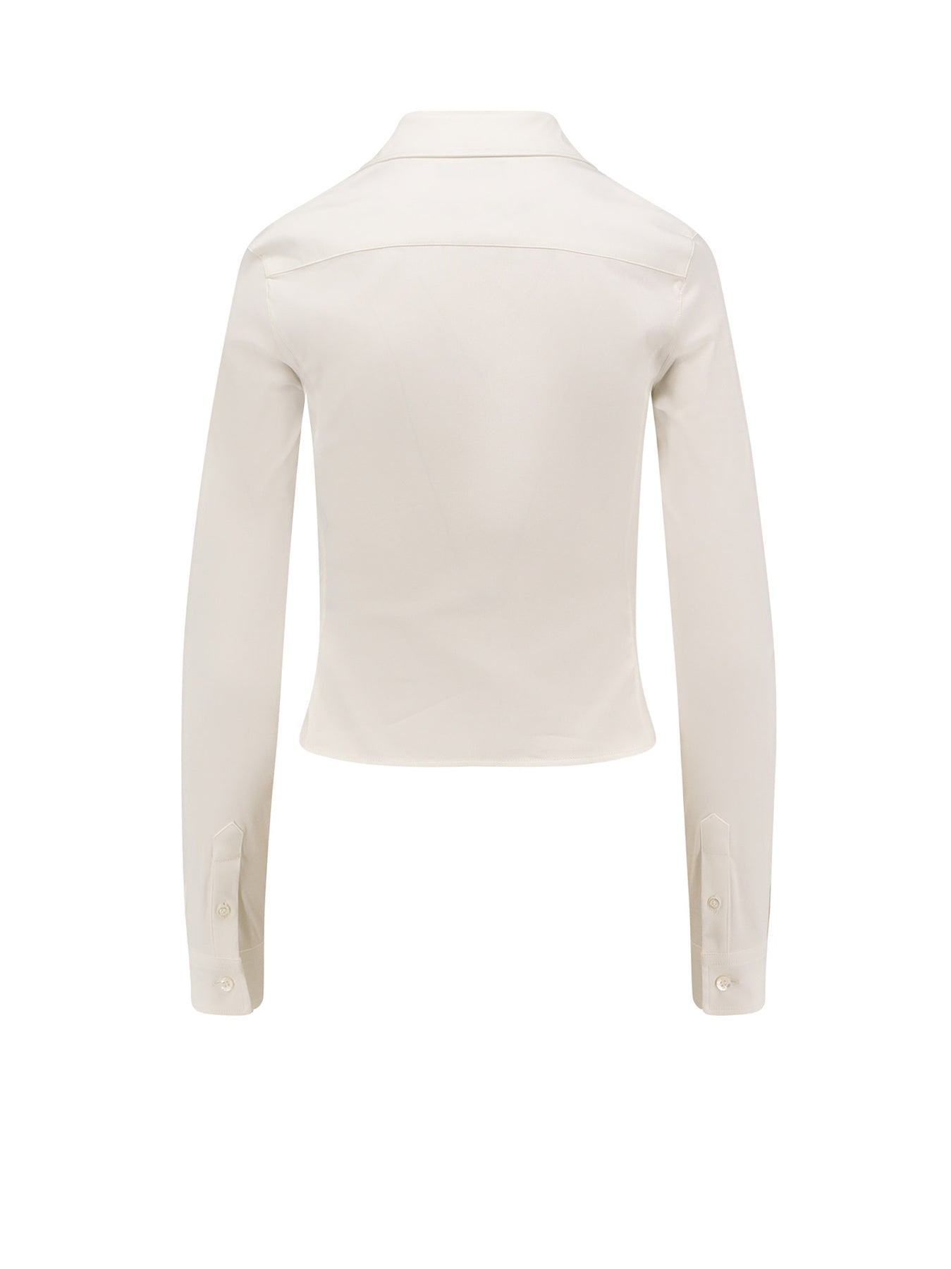 Button closure Pointed collar Gathered profile Made in Italy 85% cotton, 12% polyamide, 3% elastane SKU: 850785TSM199000