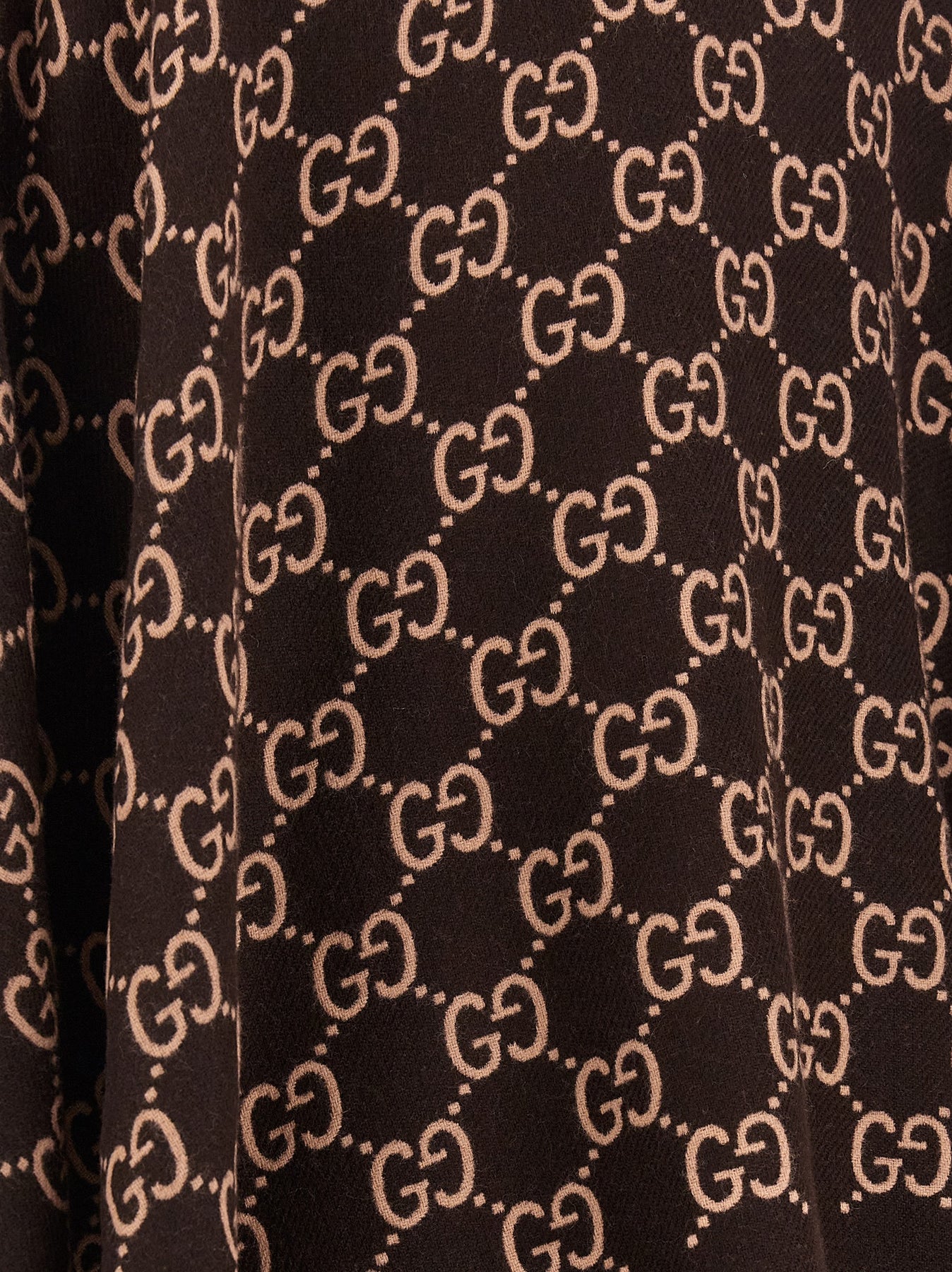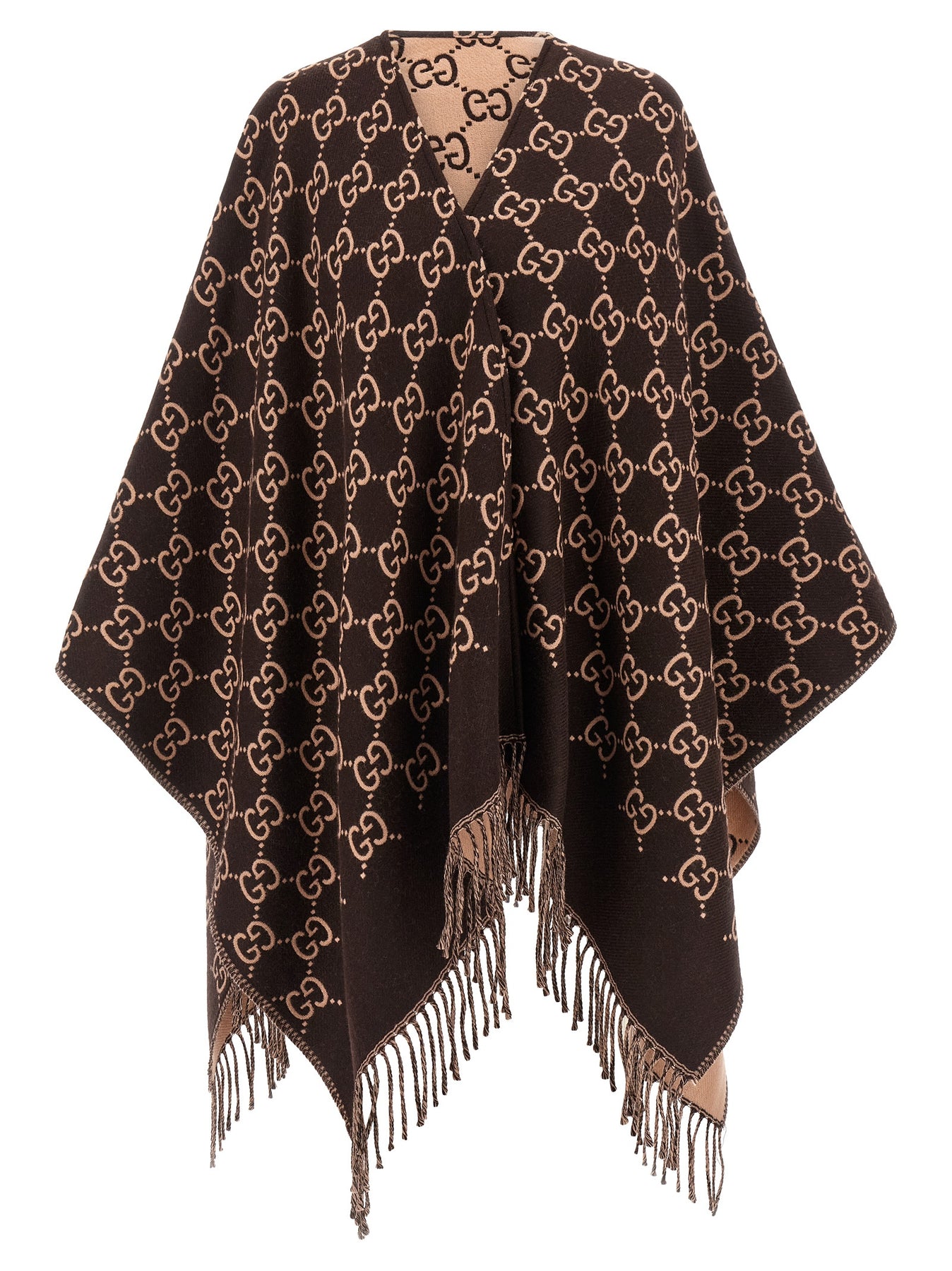 GG wool jacquard cape, fringed edges.
