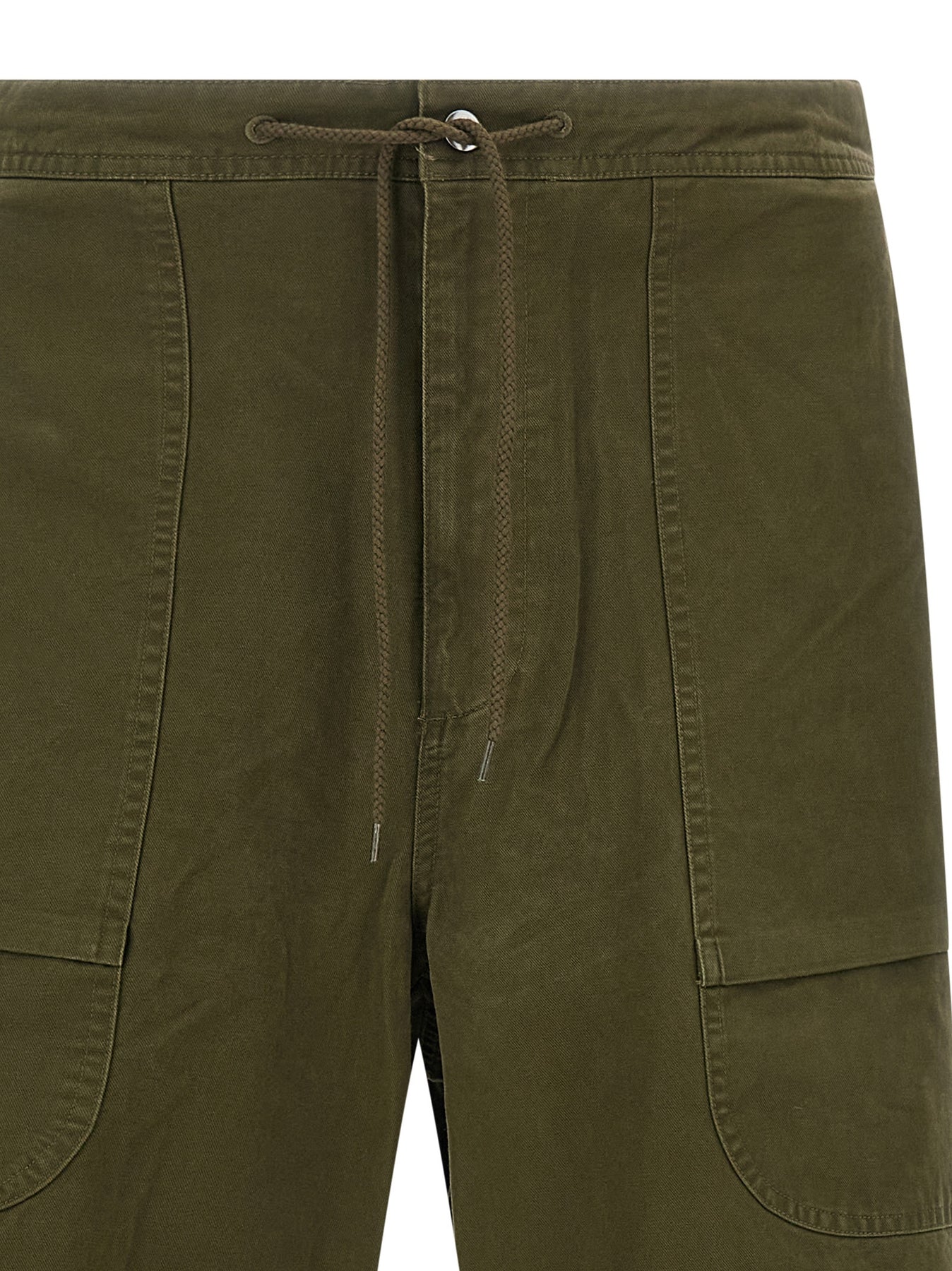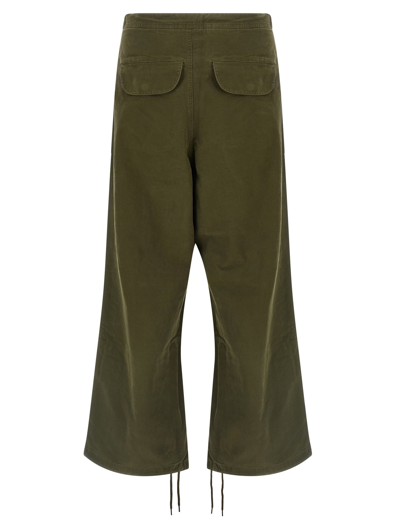'Barren Cargo' cotton pants, wide and straight leg with cargo pockets, zip and front button closure, drawstring at the waist, low crotch, pleats, drawstring on the leg bottom.