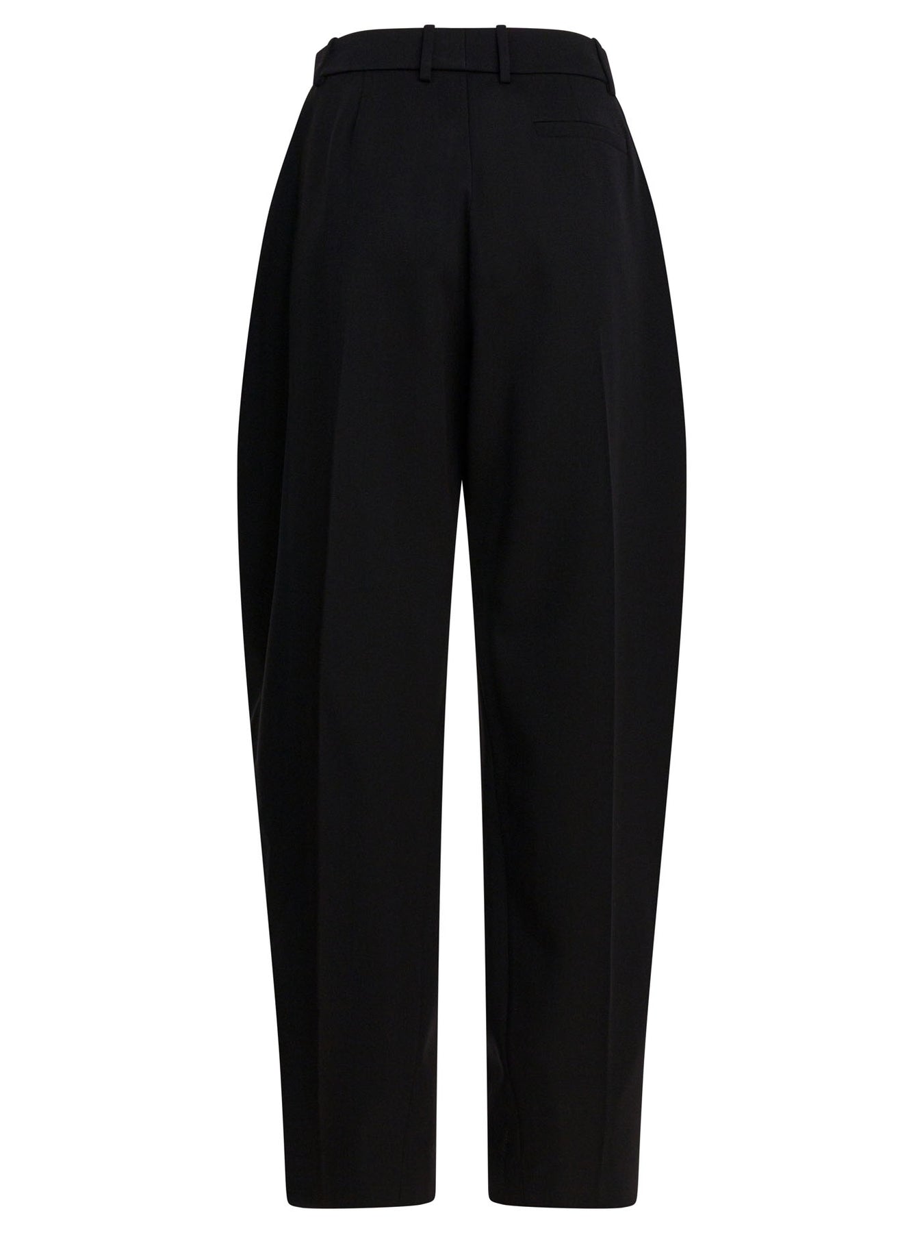 Givenchy "Cocoon" pants with tailored construction in grain de poudre wool. They present a soft-cut silhouette, emphasized by bias seams that generate enveloping volume on the leg. The design incorporates a front zipper and discreet hook-and-eye closure. Two side pockets and a back pocket add functionality to the minimalist design without superfluous decorative details. || - Solid color - High waist - Made from grain de poudre wool - Zipper and hook-and-eye closure - Two side pockets - One back pocket - Bias stitching for a voluminous effect - Regular fit