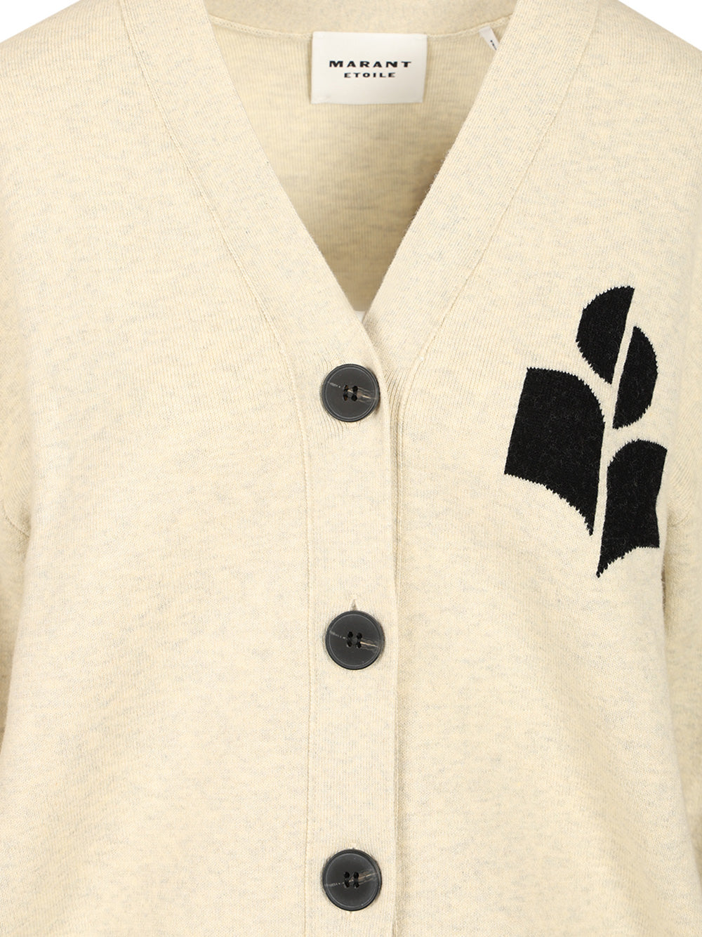 Marant Etoile's "Norton" cardigan in wool and cotton features a logo on the chest, long sleeves with ribbed cuffs, a loose fit and a ribbed hem.