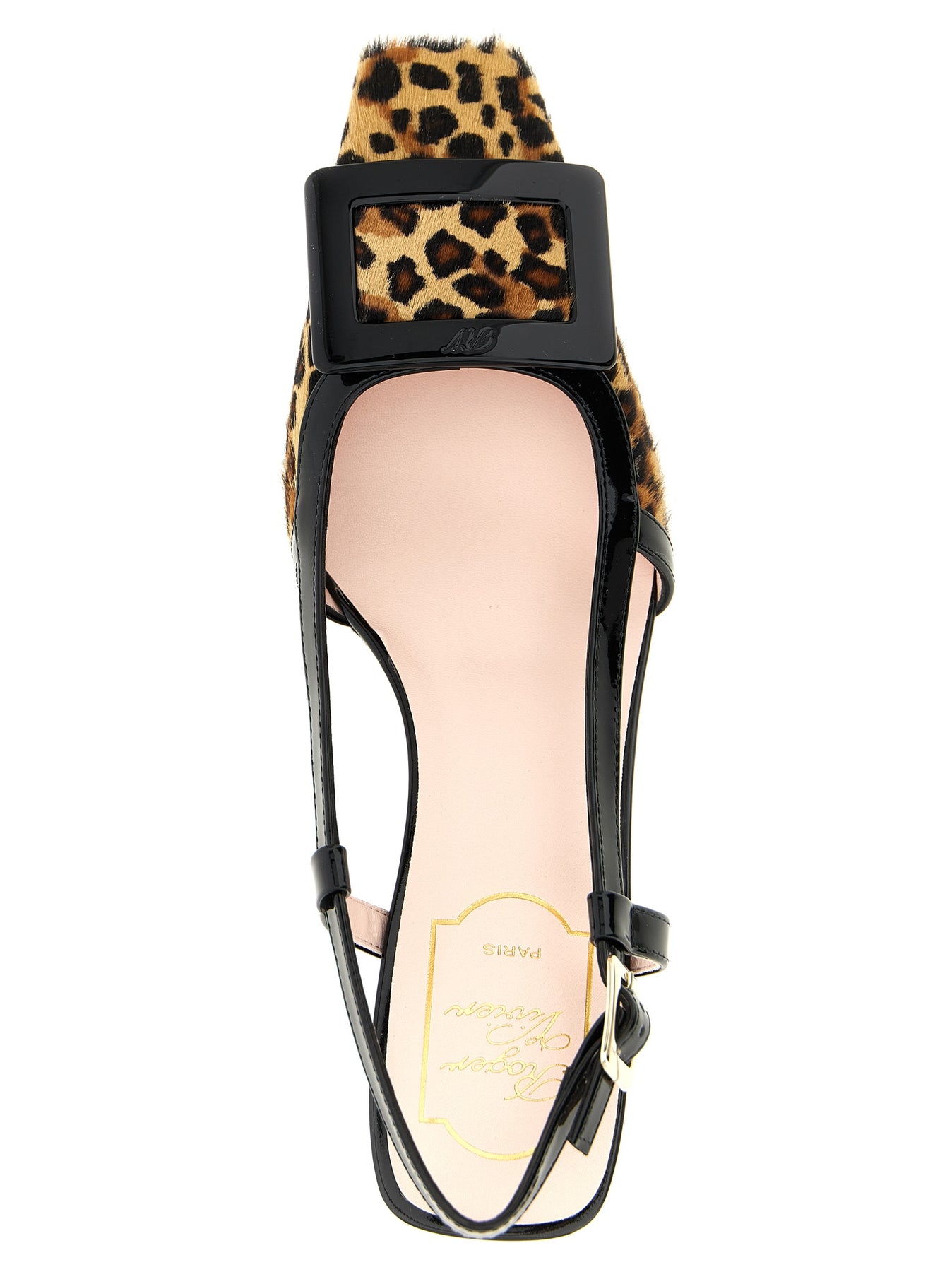 'Belle Viver' calf hair slingbacks with patent leather details, square toe with buckle, adjustable strap, Skyscraper heel, leather sole.