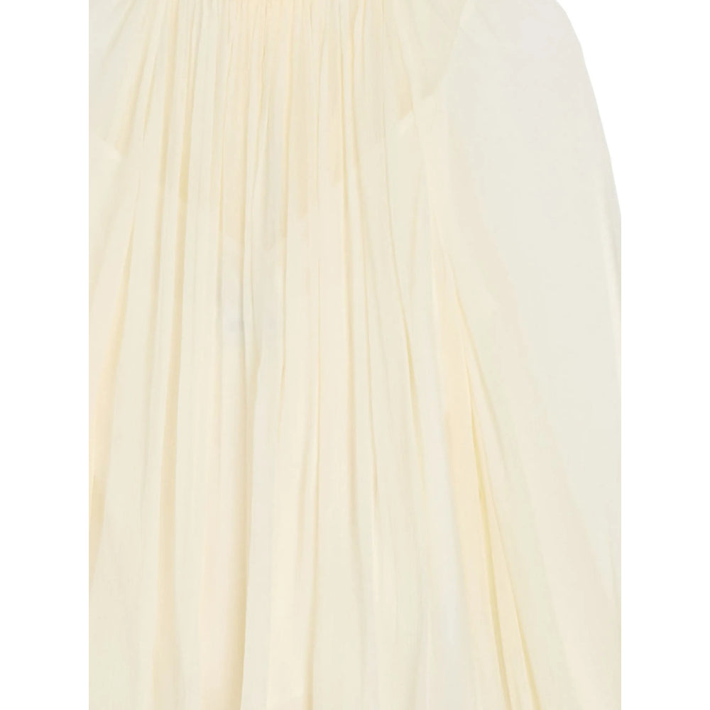 ivory pleated design high neck drawstring cuffs flared sleeves tie detail