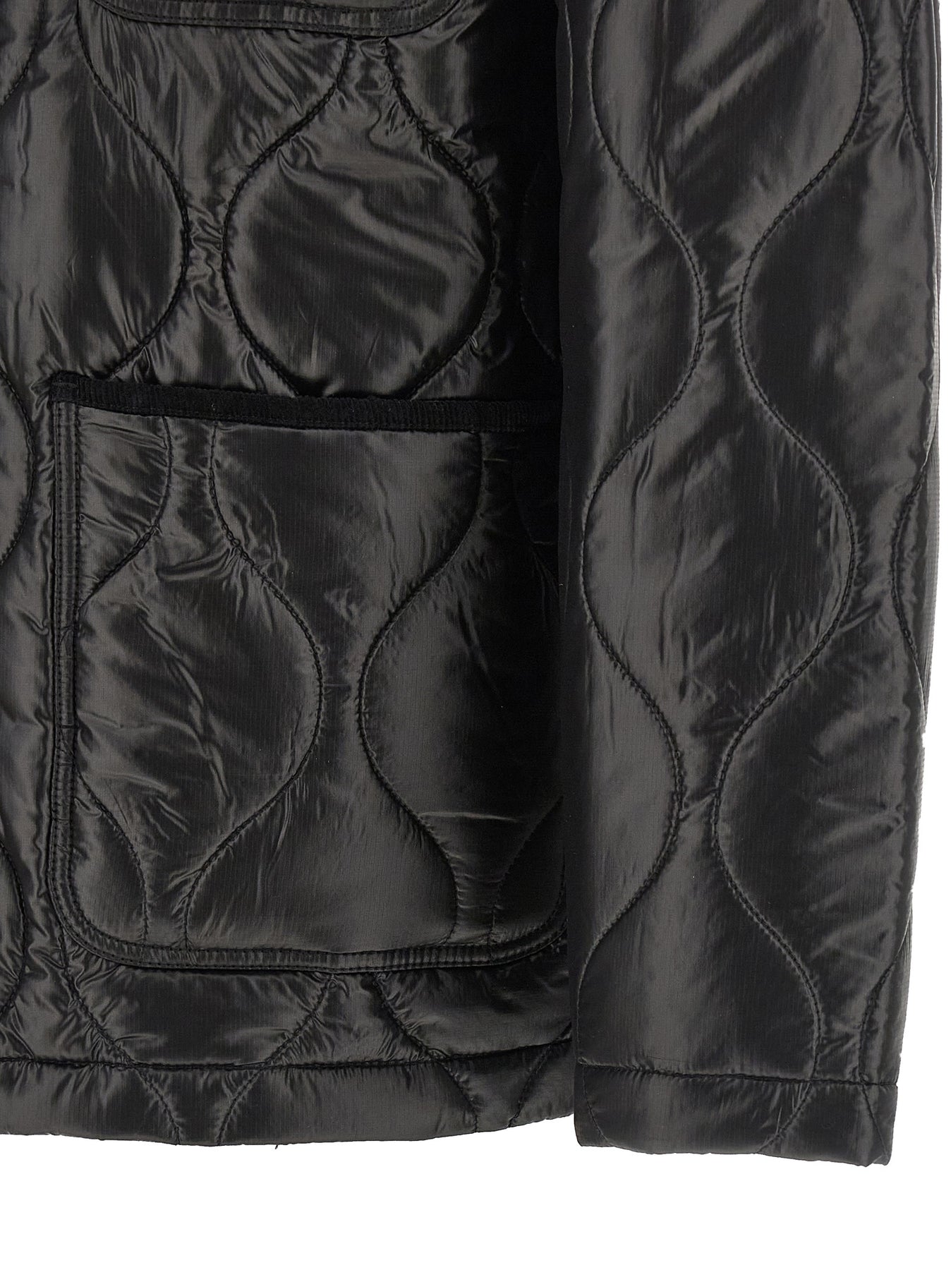 Oscar' quilted nylon jacket with tonal corduroy collar and details, logo patch and front snap button closure, pockets, long cuffed sleeves.