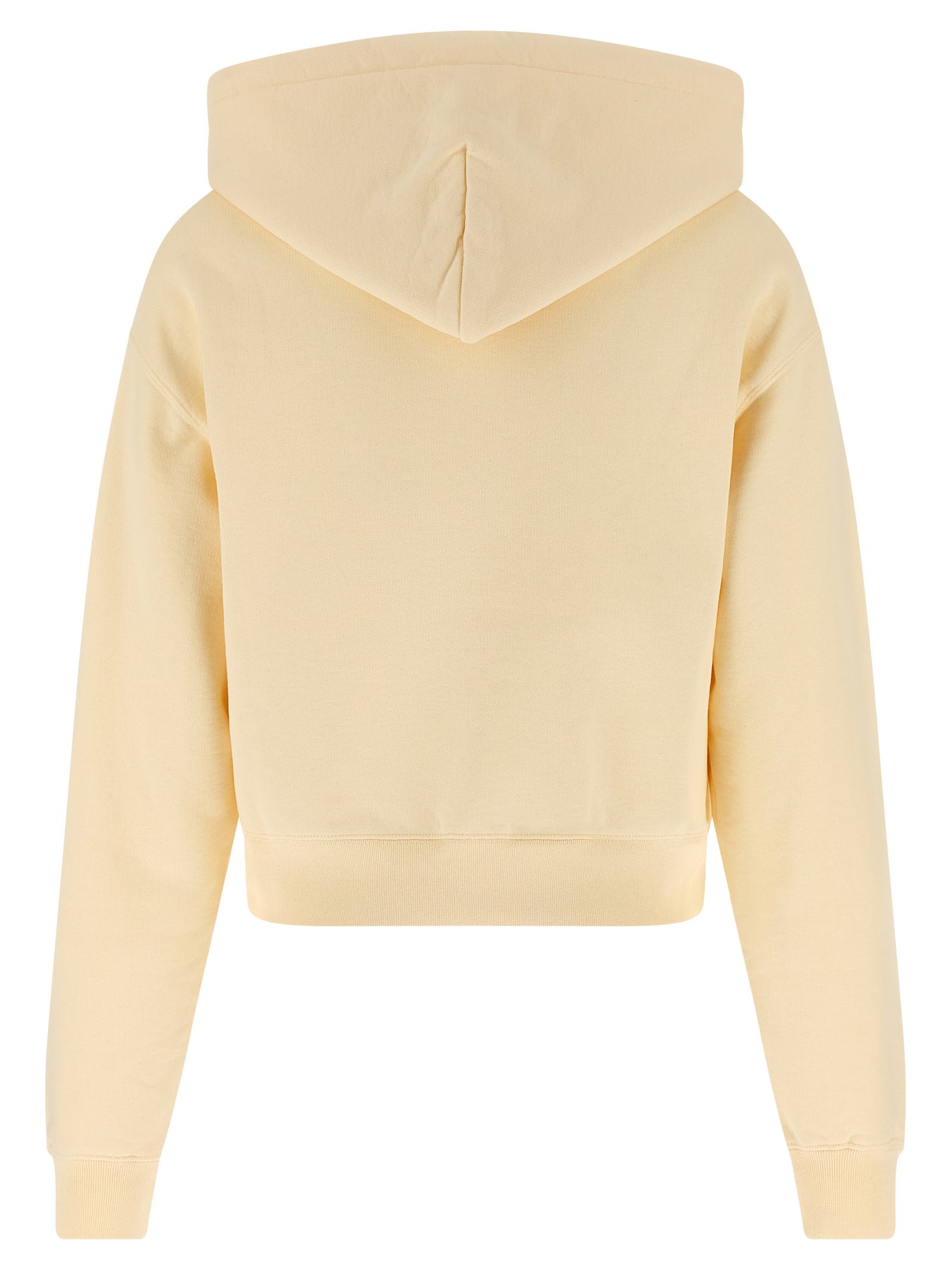 'Le Hoodie Gros-Grain' hoodie in slightly fleece cotton, front logo patch, crop style, long sleeves with cuffs and dropped shoulders.