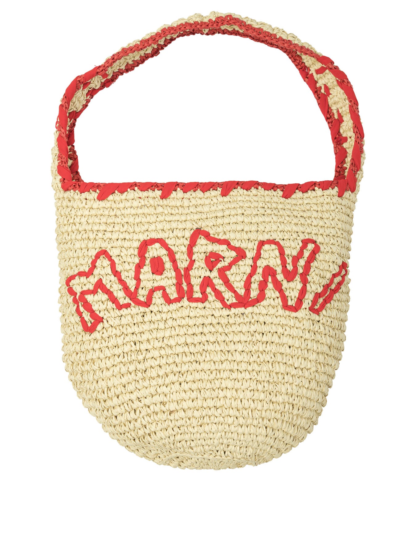 Marni's "Nassa" hobo shoulder bag represents an authentic meeting of tradition and innovation, handcrafted from Indonesian fabric that echoes the raffia effect. This accessory is distinguished by its lightweight shape and double-weave construction, which enhances its unique structure and design. Designed for a dynamic and sophisticated woman, it offers a versatile style suitable for different occasions, elegantly accompanying any daily or evening outfit. || - Marni organza logo on the front - Double woven structure - Handcrafted construction - Contrasting hand-stitched border