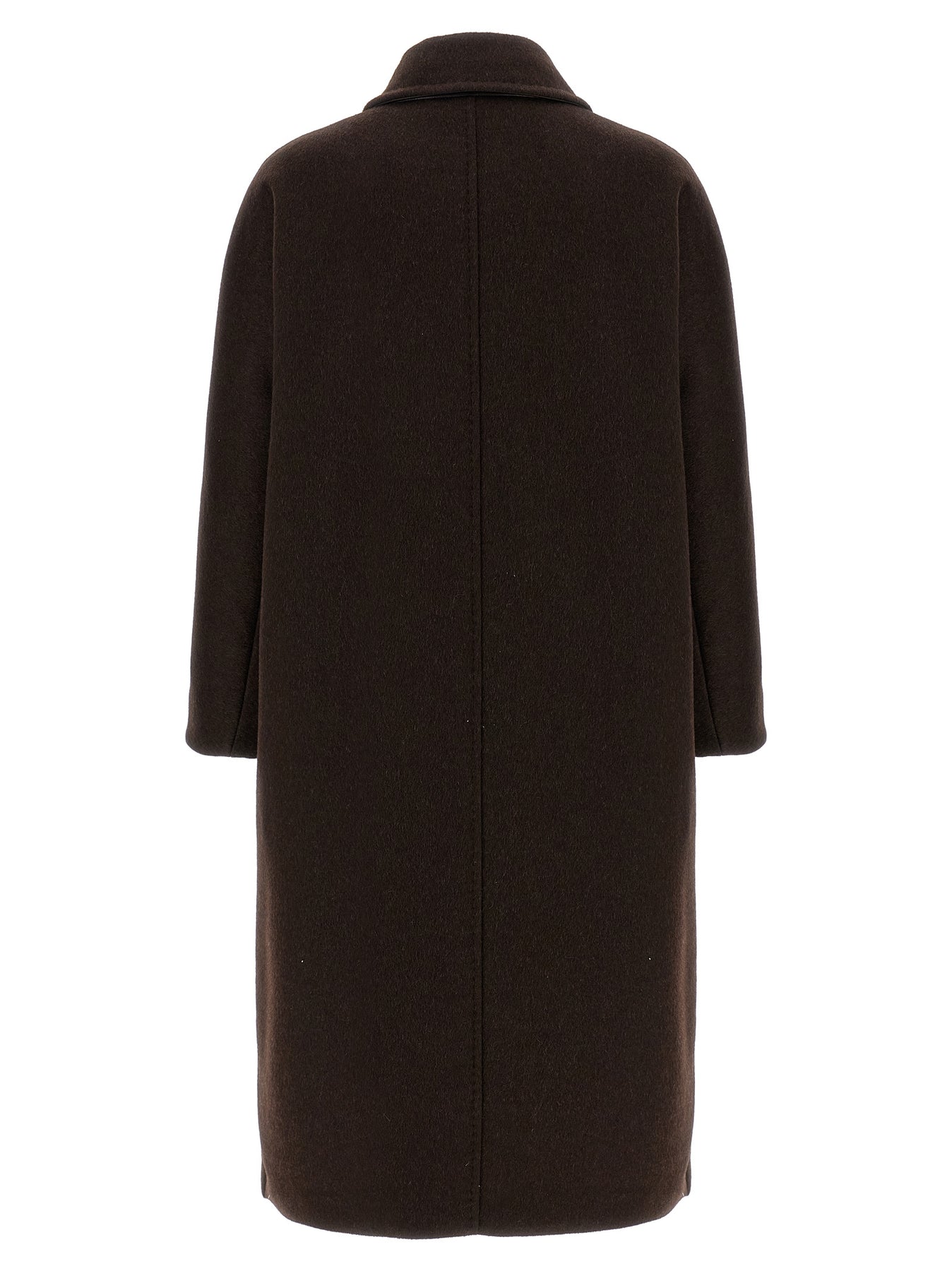 'Angus' coat with cashmere, alpaca and wool pile finish and finished with tailored dot, double-breasted style with front button closure, peak lapels with king-stitch basting in common thread, contrast leather undercollar, pockets, long sleeves, cupro semi-lining.