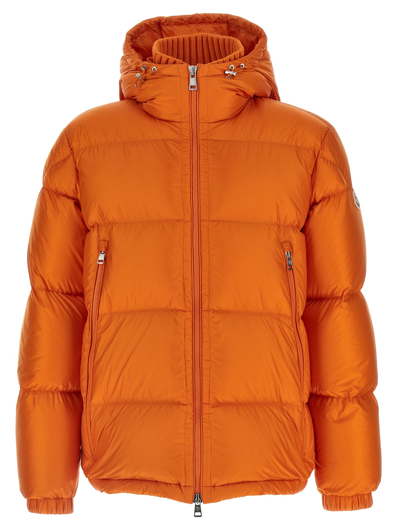 'Rivau' down jacket in technical fabric with boudin quilting with goose down padding, adjustable hood, high neck with ribbed wool knit lining, front zip closure, pockets, long sleeves with elastic cuffs, felt logo patch, elastic at the hem.