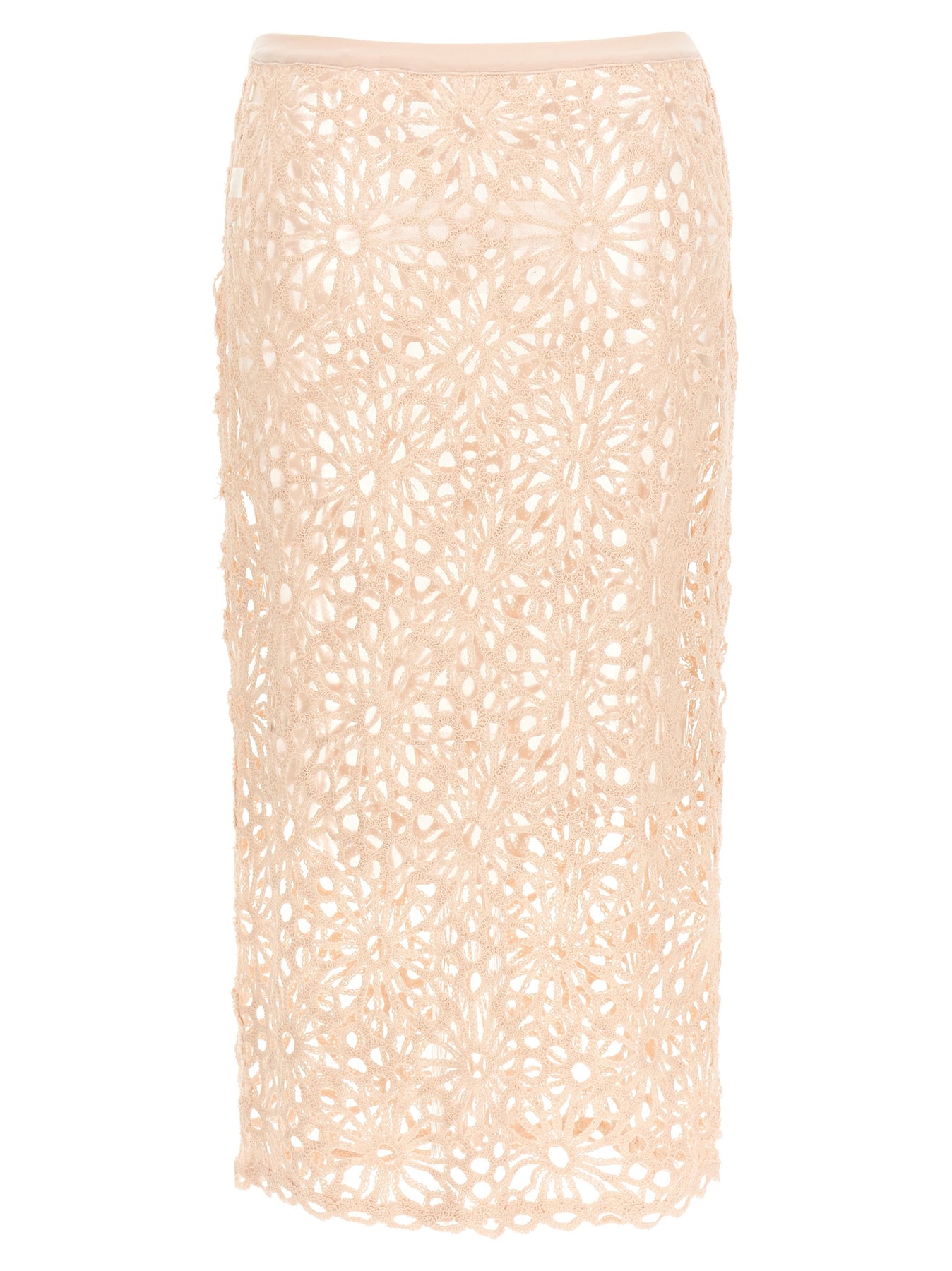 'Crochet' floral midi skirt, sheath dress model with elastic waistband, sempitransparent.