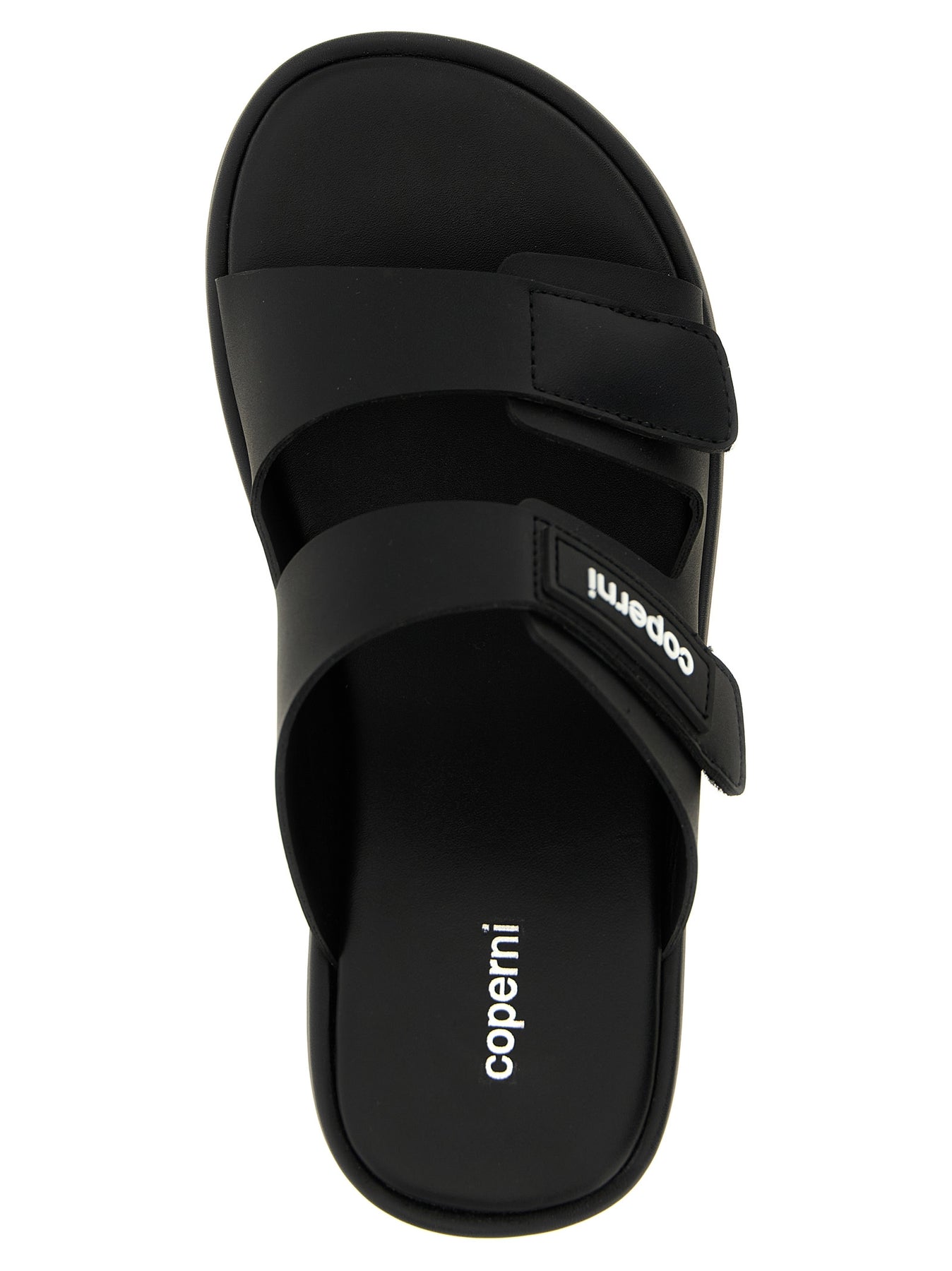 'Patch Wedge Sandal' wedges in leather-effect fabric with adjustable straps with Velcro, front logo patch, rubber sole.