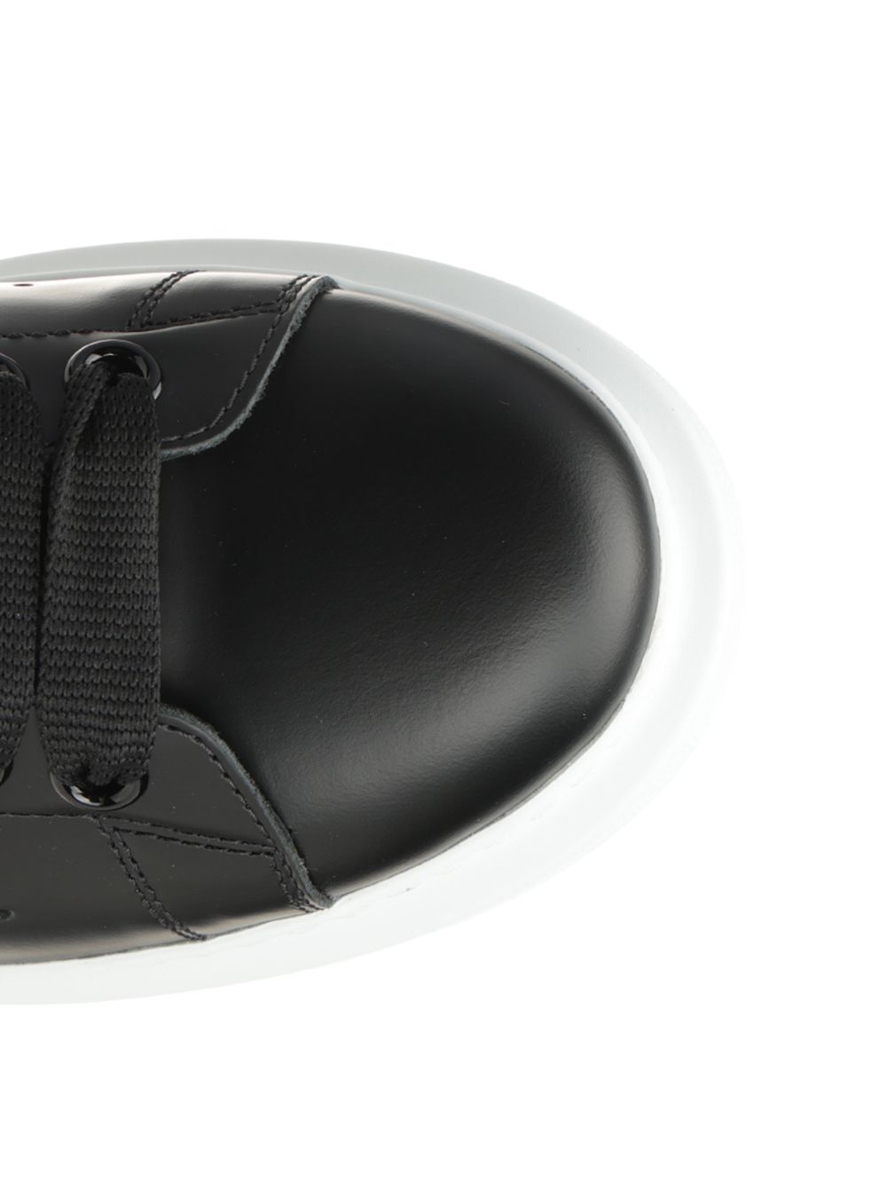 Oversized calfskin sneaker by McQueen, featuring a leather heel with McQueen signature and a thick rubber sole.