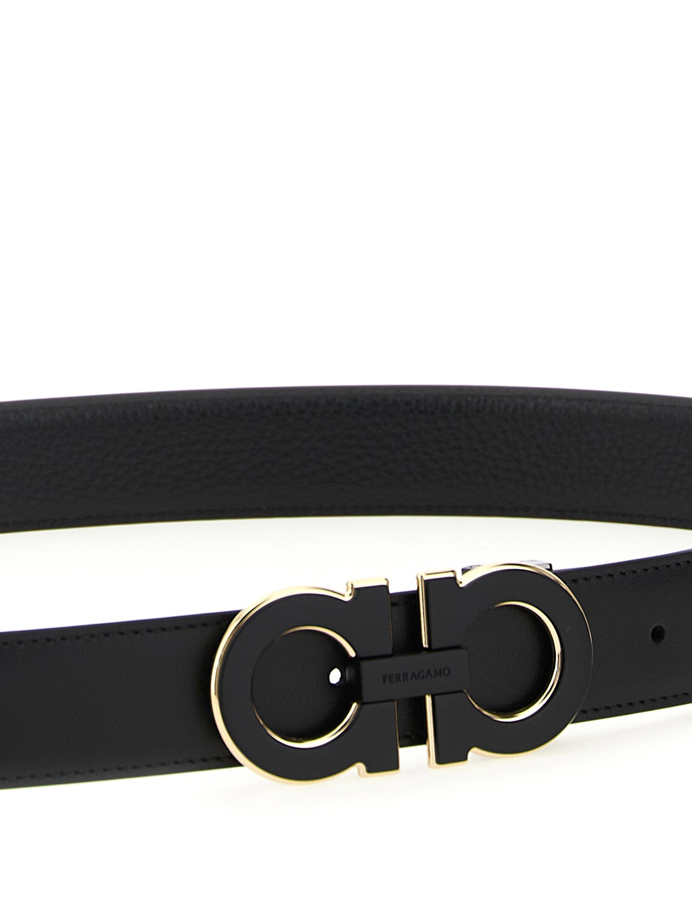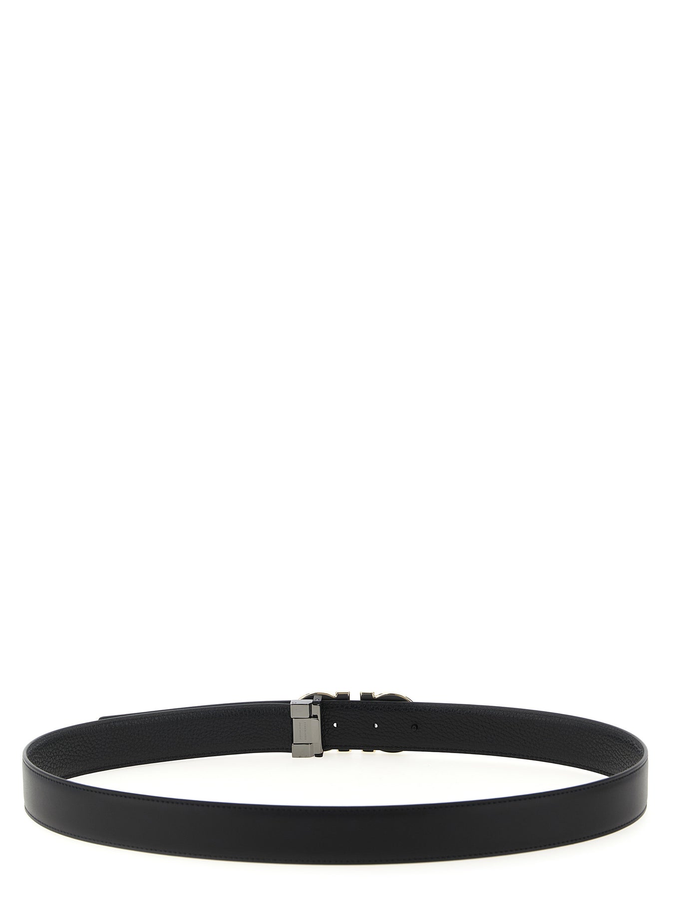Reversible hammered and smooth leather belt with metal 'Gancini' buckle.
