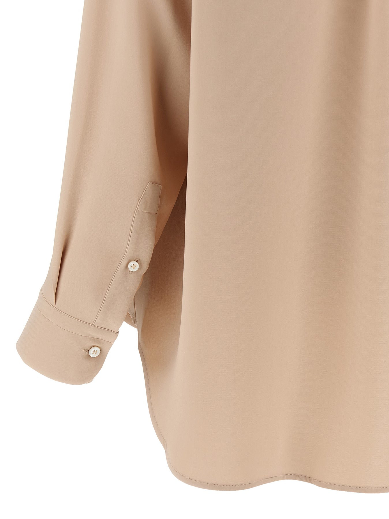 Silk cady shirt with front button closure, long cuffed sleeves and dropped shoulders.