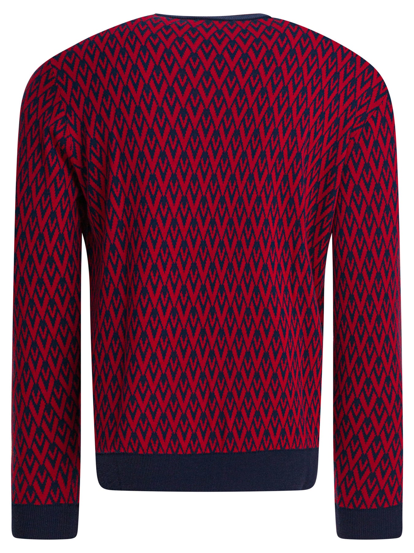 Valentino's "Toute La V" crew-neck sweater, made of 18-gauge fine-knit wool. The construction features a regular silhouette, characterized by Toute la V jacquard pattern repeated throughout. The crew neck, cuffs and hem are finished in ribbed knit. The straight cut and knit construction ensure compactness in the fabric and detail in the patterns. || - Toute la V all over jacquard pattern - Long sleeves - Ribbed collar, cuffs and hem - Valentino logo integrated into the pattern - Regular fit