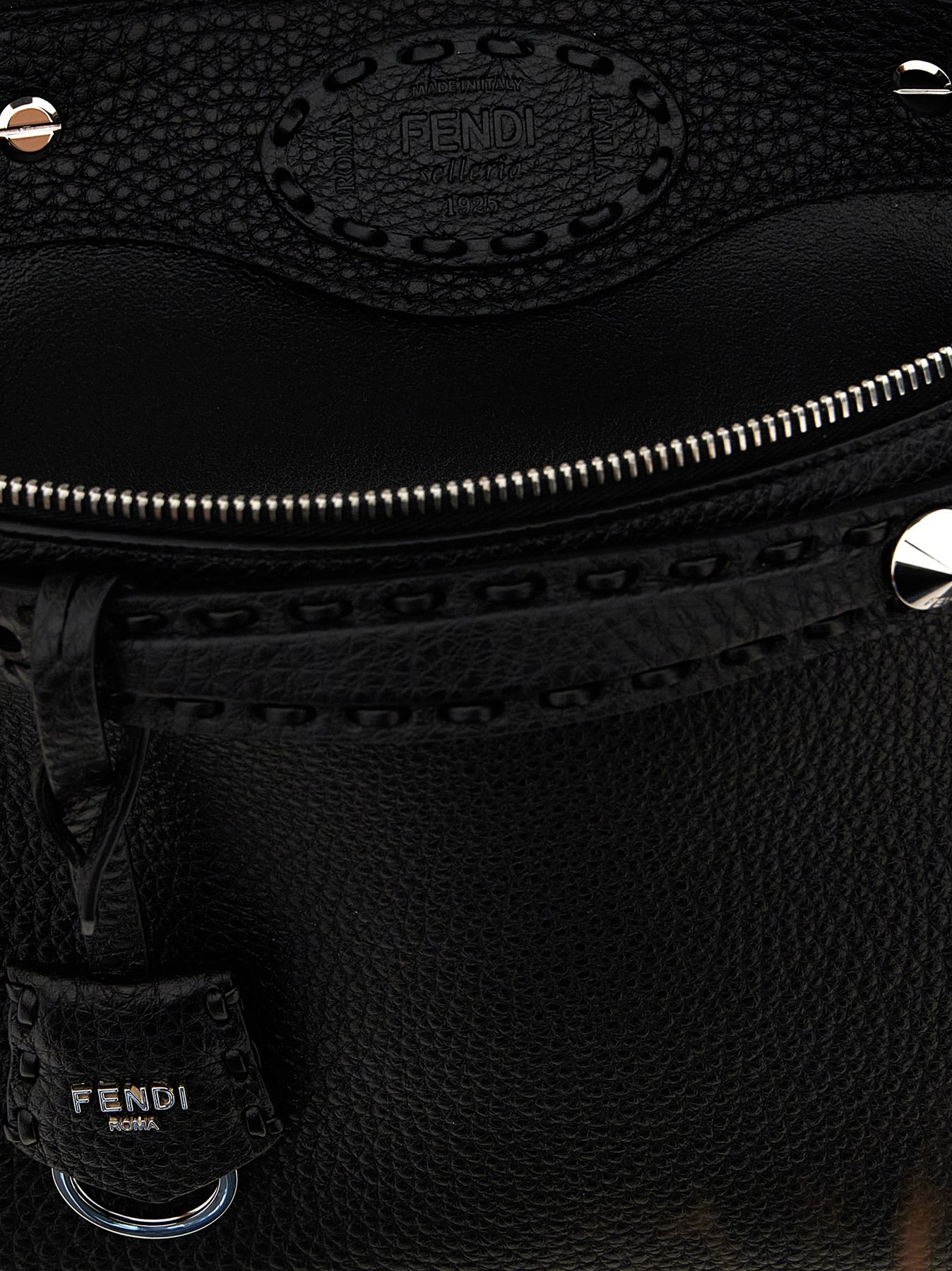 'By The Way Selleria Medium' handbag in Roman leather with 192 handmade tone-on-tone macro stitching, zip closure, double handle with metal details, logo tag with removable keyring, adjustable and removable shoulder strap.