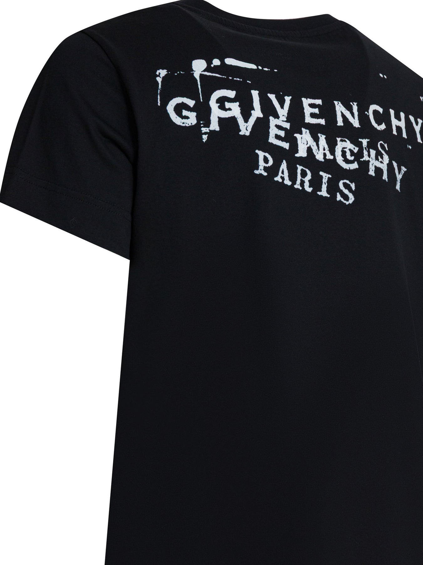 Givenchy's "Fitted" crew-neck T-shirt made from compact-weave cotton features a straight silhouette with a short-sleeve construction and stretchy crew-neck detail. The smooth, even surface highlights the Givenchy Paris logo print. The side and shoulder seams are thin and regular, ensuring a straight and defined cut. || - Logo print - Short sleeves - Elasticized crew neck - Regular fit