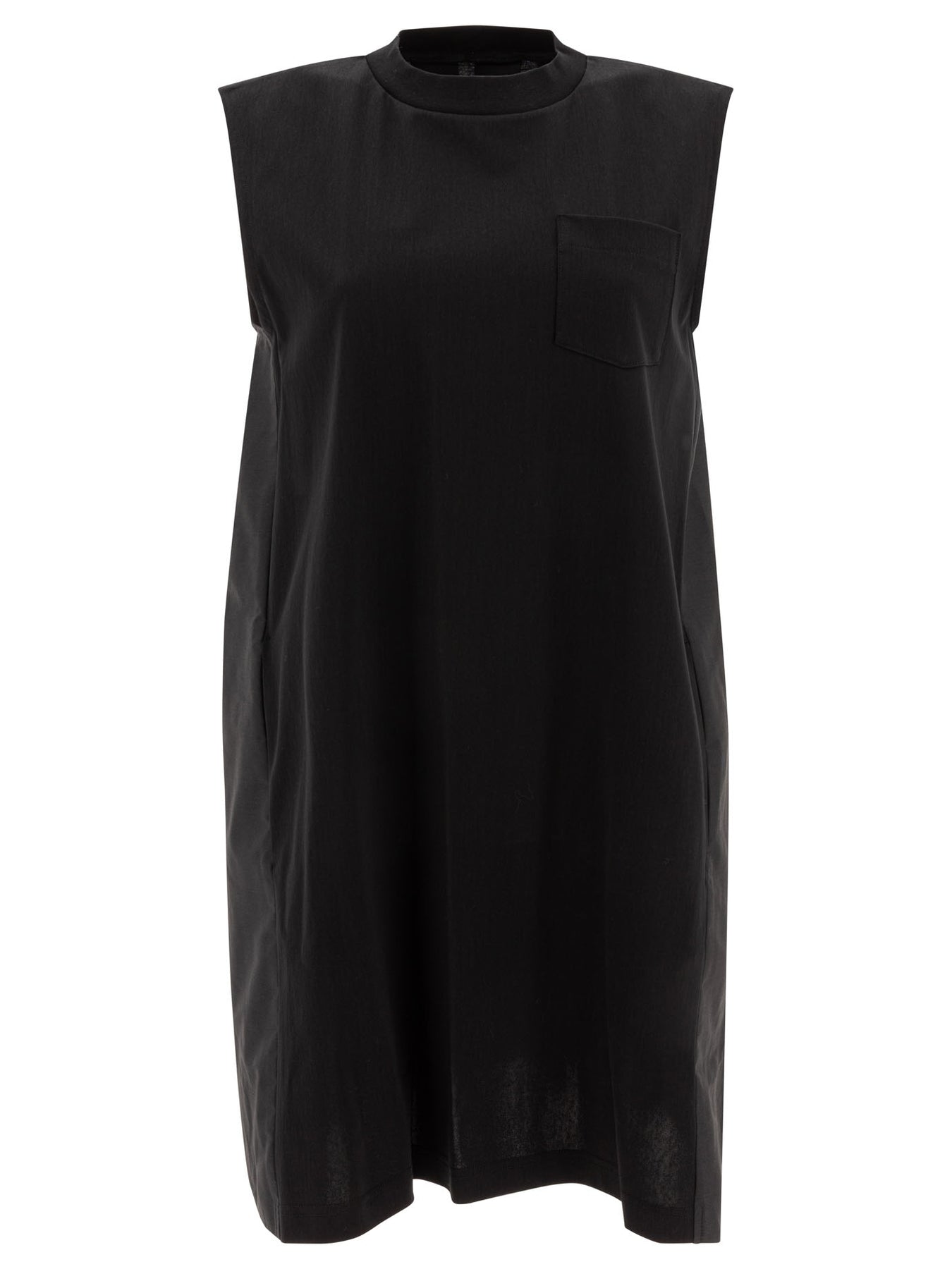 Elegance meets simplicity with Sacai's cotton dress, perfect for the woman who loves a refined and modern style. This uniquely designed garment is meant to enhance femininity with a touch of sophistication. Perfect for occasions when you want a distinctive and timeless look, this dress will soon become a must-have in your wardrobe. || - Cotton dress - Crew neck - Sleeveless - Pleated back - Relaxed fit - A-line design || For a complete on-trend look, pair this dress with block heeled sandals and a chic clutch. You can complete the look with minimal accessories to maintain the balance between style and comfort. Perfect for evening events or an elegant lunch out on the town.