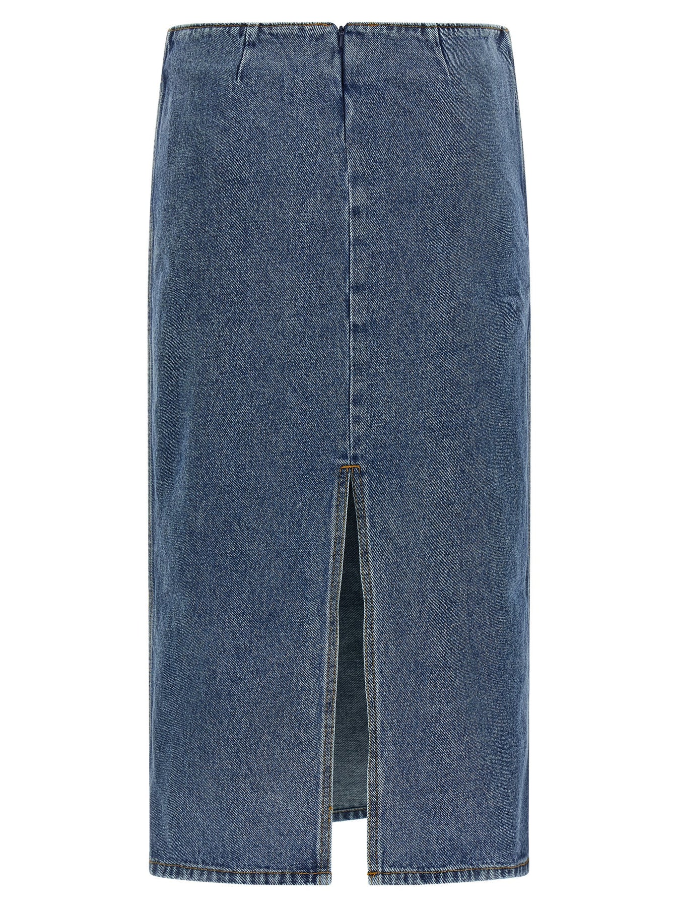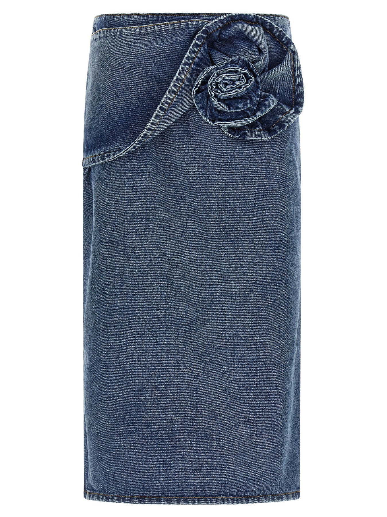 '11' midi skirt in cotton denim with contrast stitching, large 3D floral decoration on the front, longuette model, zip closure and back split.